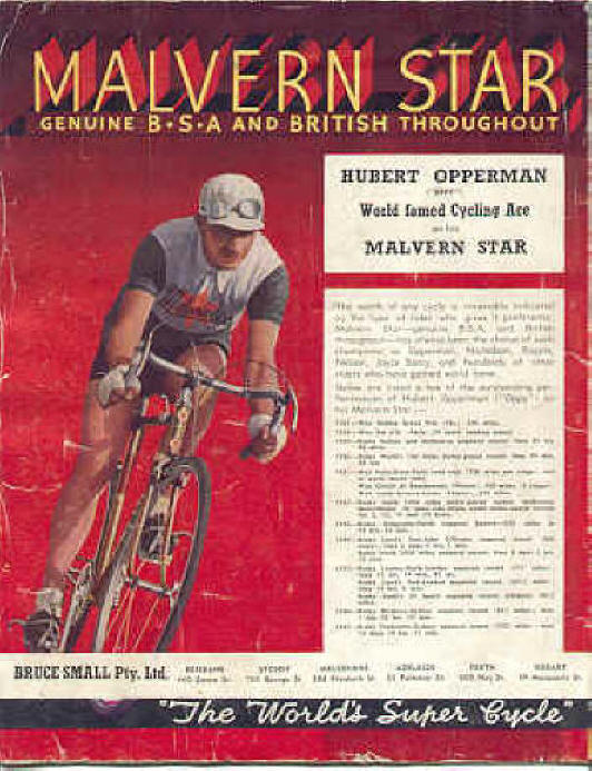 “In 1920 his business was purchased by a young bicycle salesman named Bruce Small. A year later Small began to sponsor a young racing cyclist by the name of Hubert Opperman. So began one of the great partnerships of Australian cycling and Australian industry. Hubert Opperman’s fantastic sporting achievements provided publicity for Malvern Star while Bruce Small’s promotional skills guided Opperman’s career and made him Australia’s most famous cyclist. Malvern Star became synonymous with bicycles across Australia.”