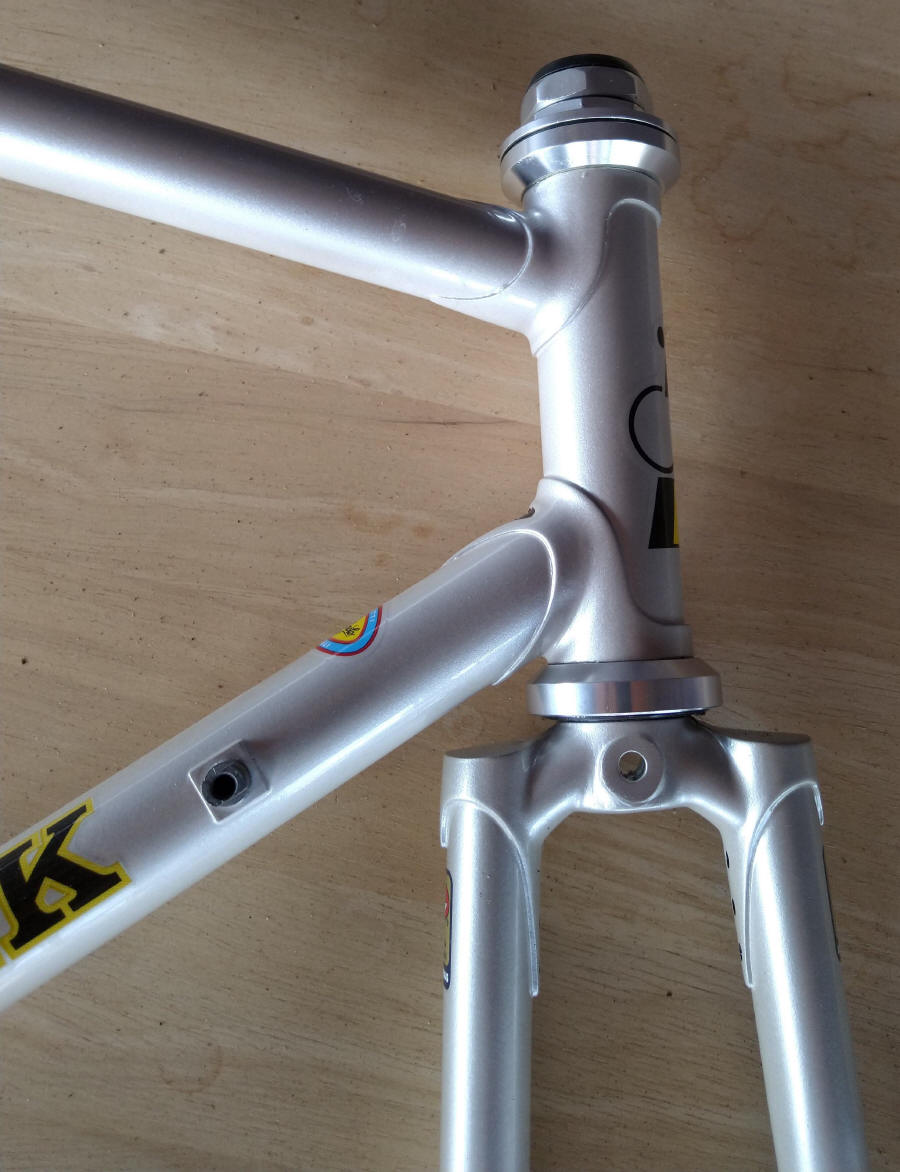 He was very interested in cycling. During the 1970s he started reading about how to braze frames. For his first frame, he drove to Vermont to buy a Reynolds 531 tubeset from Bill Vetter, who was a small builder. After it was complete, he showed it to Bill, who was blown away; he couldn’t believe J-P made it himself. It took him 2 years to build the 1st frame, because he made all his fixtures and jigs himself, along with some of his taps and dies.