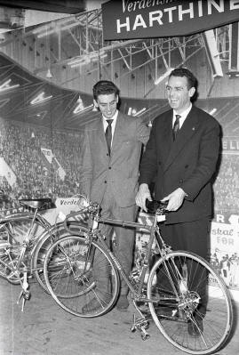 On right: Rijk van Steenbergen promoting Harthinger, 1960