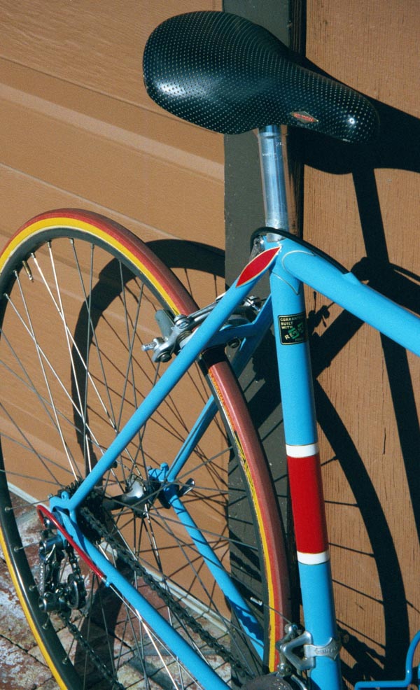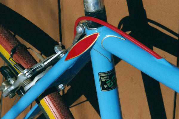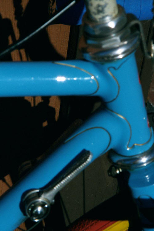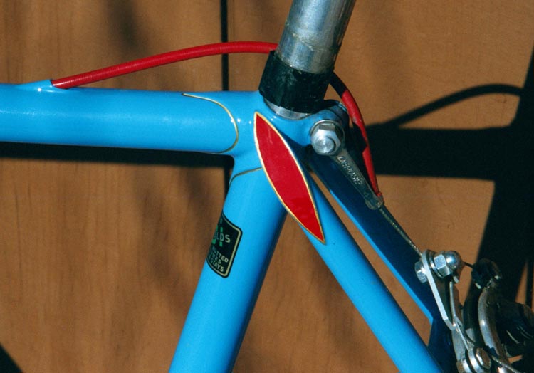 “When I took the frames to CyclArt to have them repainted several years ago, the Cunninghams made some modifications to them; they routed the rear brake cable in the top tube, brazed on some parts so I could get away from the clamp-ons that so ruined the paint and rusted over time, and other things. The paint job was wonderful, as usual, and in color just as I received them in 1961.”