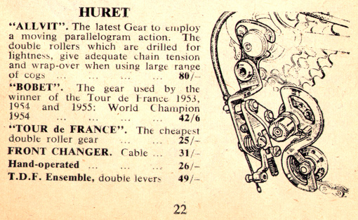 André Huret (1891-1964) Paris, France. Began making Derailleurs in Nanterre in Paris in 1920.