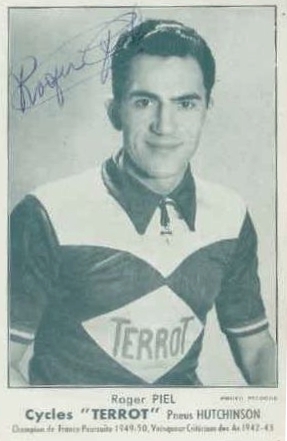 “Roger Piel (1921-2002) was a French Professional during the 1940/50’s. He won three National Pursuit titles on the track and was second in the 1946 Worlds Pursuit Championship. During his career he rode for: Garin, Alcyon, Gitane and Guerra.”