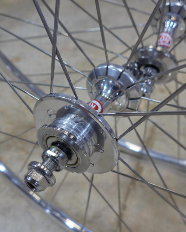 Hub flanges were available in high polish, black or grey anodized. The hub centers were uniformly high polished. Both road and track were available.