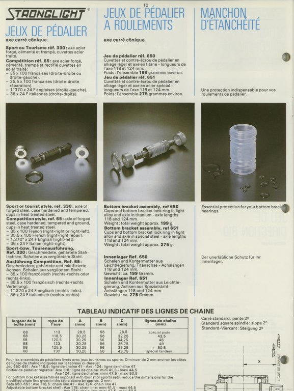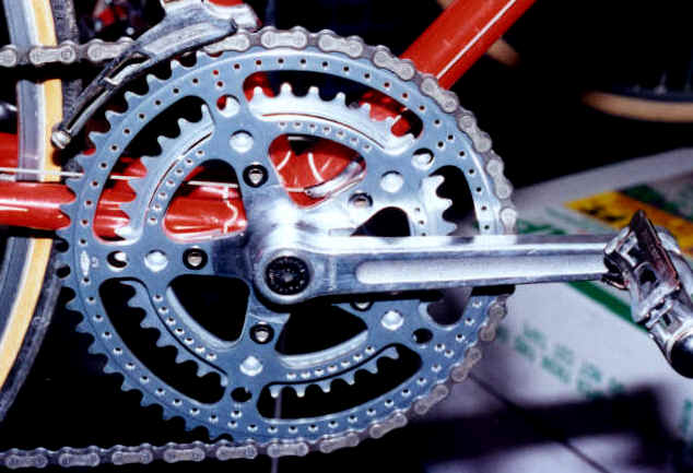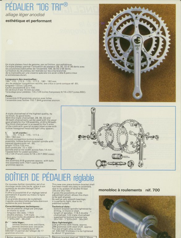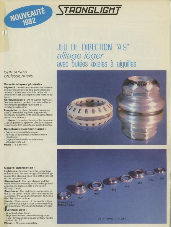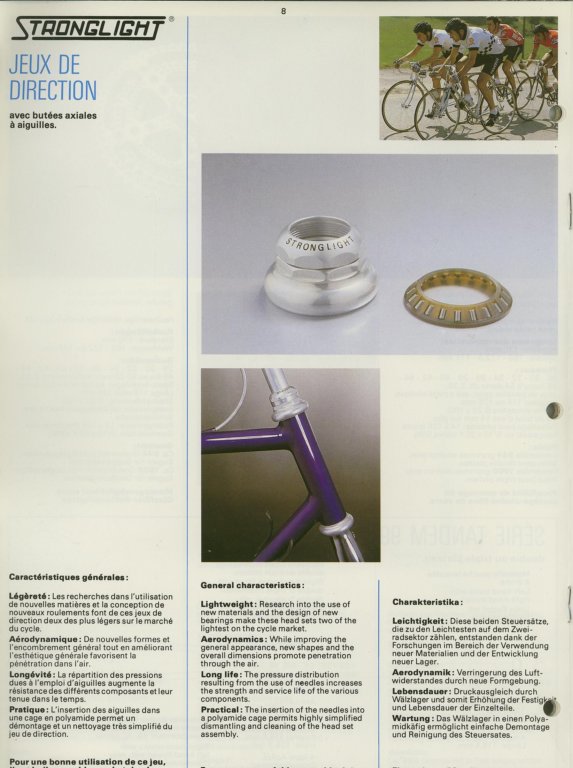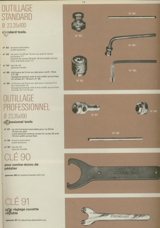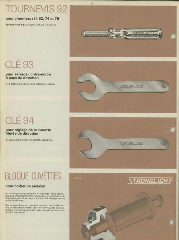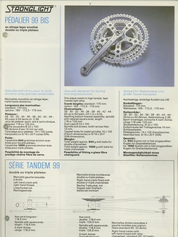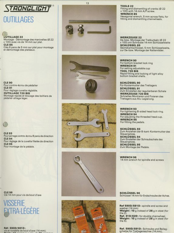 “Stronglight, the Stephanoise firm who before the war introduced the square fitting for crank spindles, has perfected its products by attaching the second and third chain rings with countersunk bolts and nuts with six hollow faces, a system that has been long desired.”