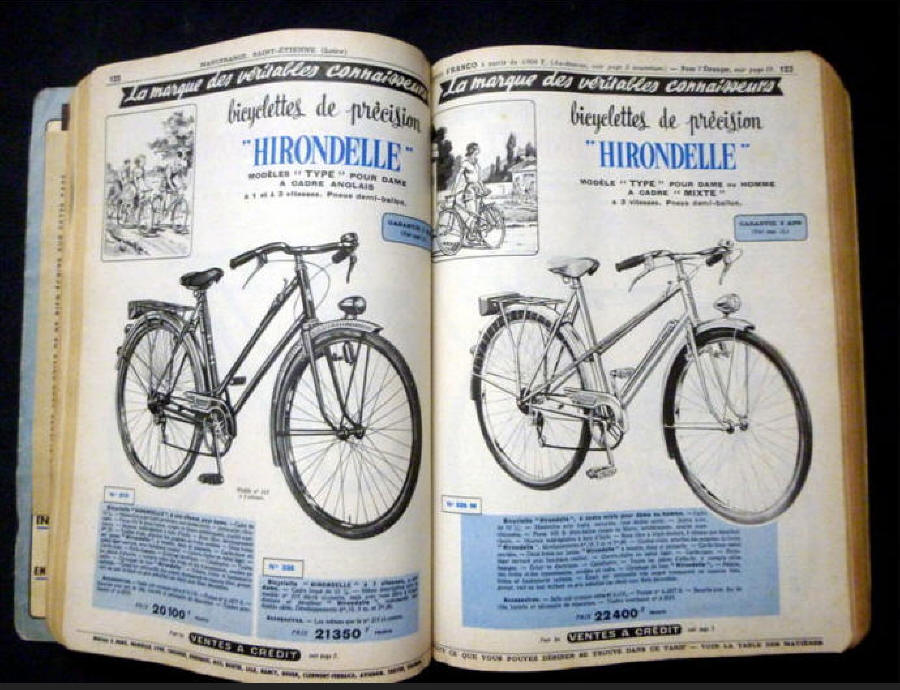 Catalog lillustrations of Hirondelle bicycles, presumably from the 1930s?