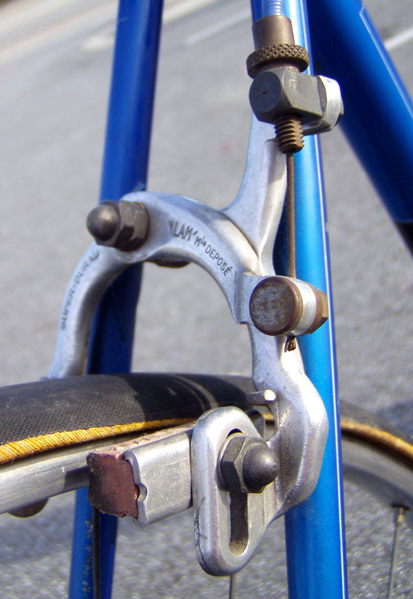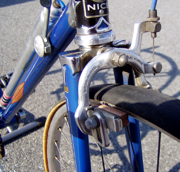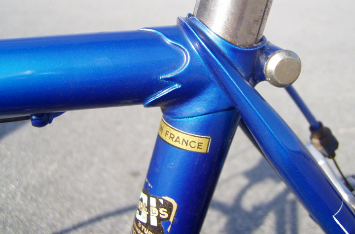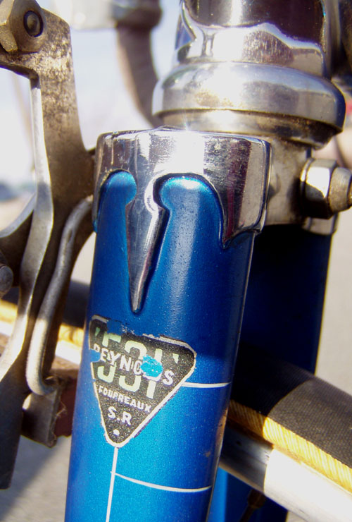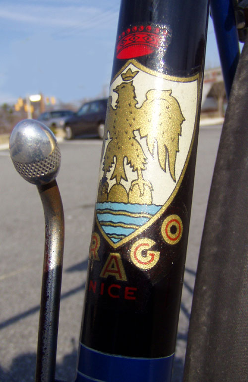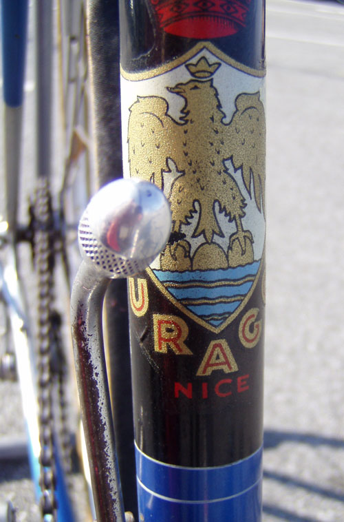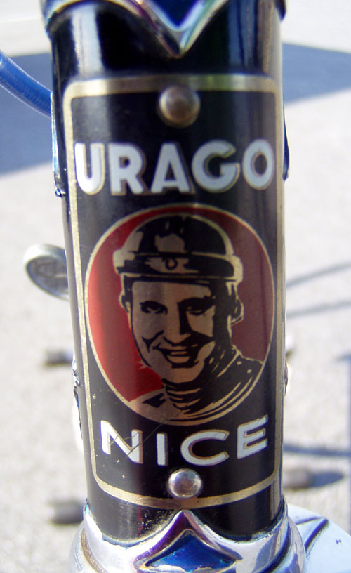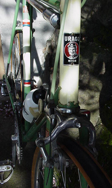Top models were often made by the artisan frame builder Anicet Cattanéo (also based in Nice) who continued building into the late 1970s or early 1980s. The Urago’s spearpoint fork crown was a sign of a “Catta” build.