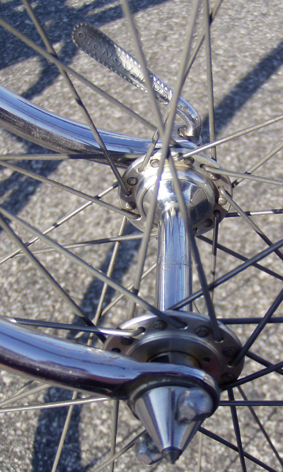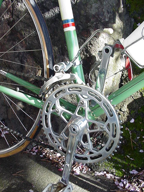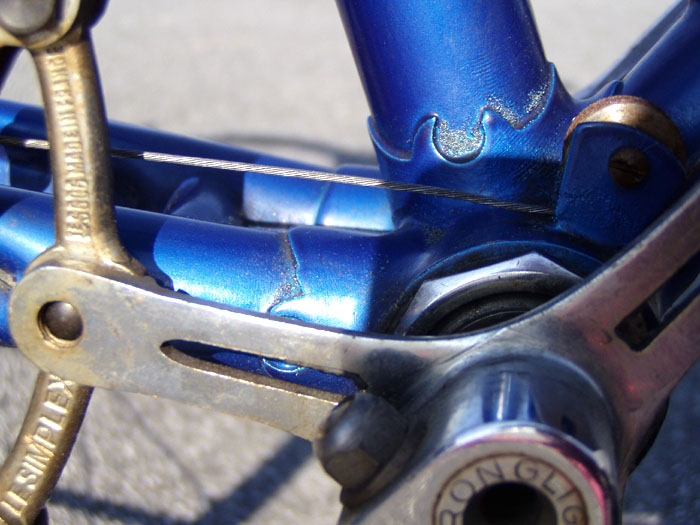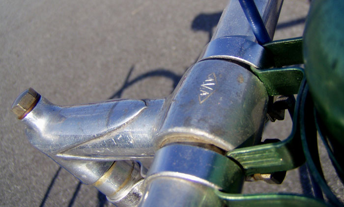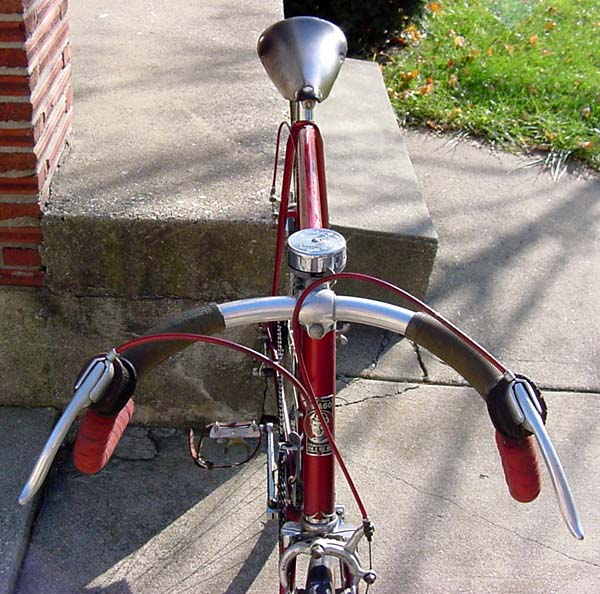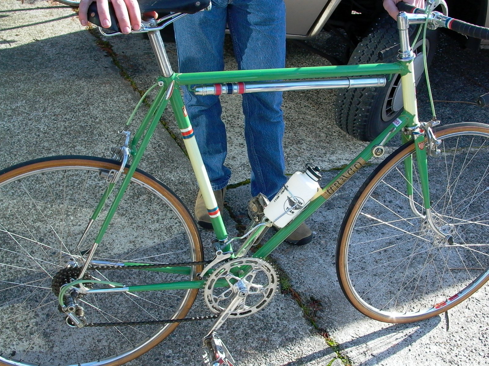 Top models were often made by the artisan frame builder Anicet Cattanéo (also based in Nice) who continued building into the late 1970s or early 1980s. The Urago’s spearpoint fork crown was a sign of a “Catta” build.
