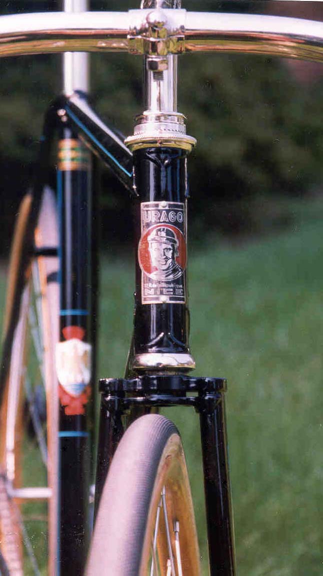 Founded by Dominique Urago in 1935 and operated as a bicycle supplier until sometime in the 1980s. With brothers Joseph and Francois (a track racer, w/championships from early 1920s -1930s and whose likeness is on head badge) Urago were famous for the quality of their handmade frames.