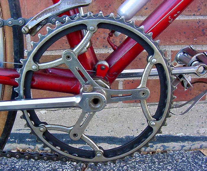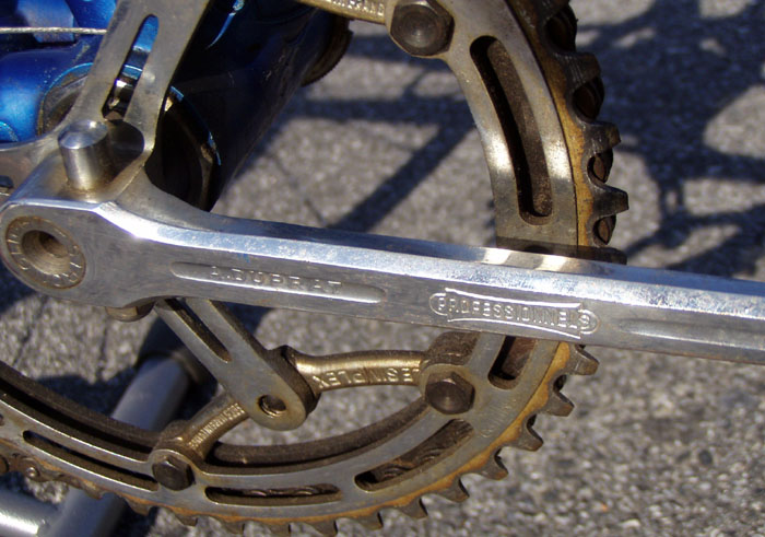 • A. Duprat hollow steel cranks with Simplex chain rings.