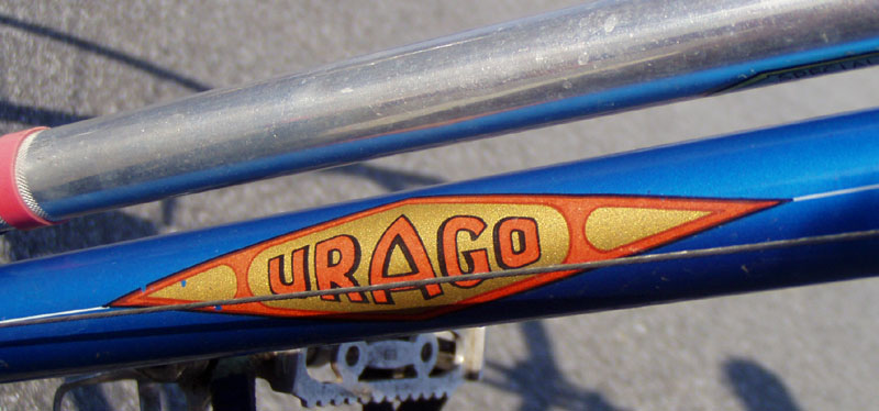 “By the late 1970s, Urago seemed to have moved to simple block lettering on both down tube and seat tube.”