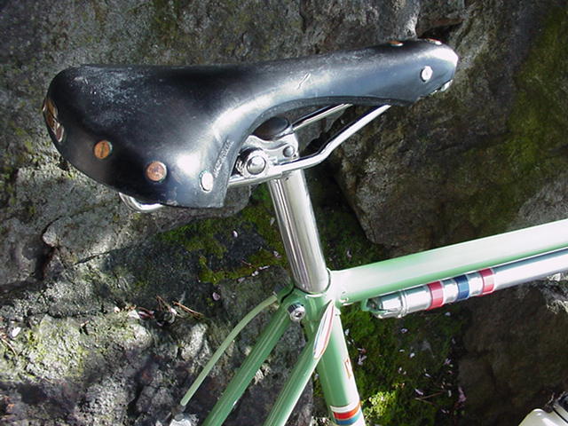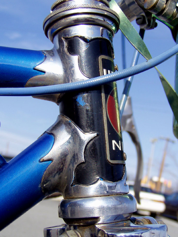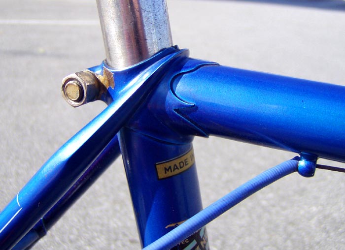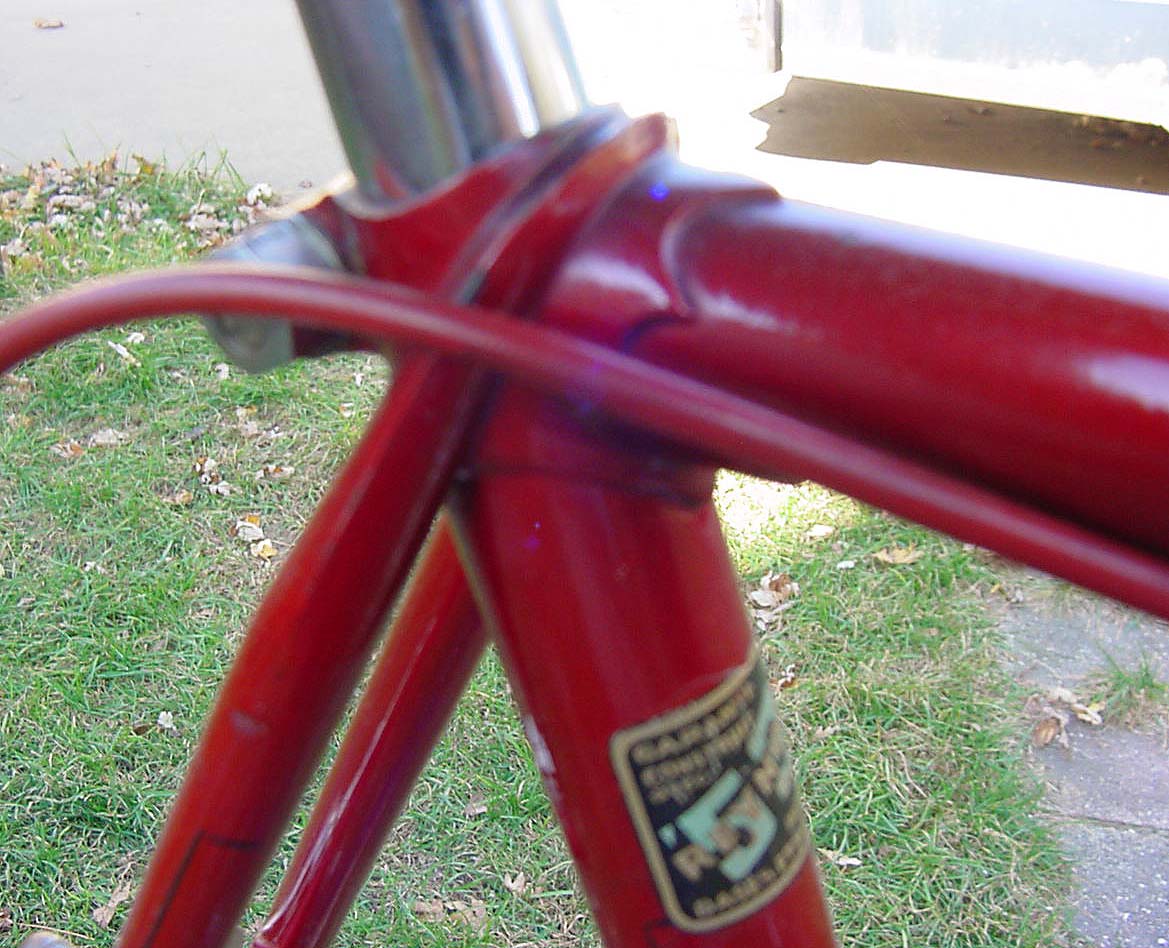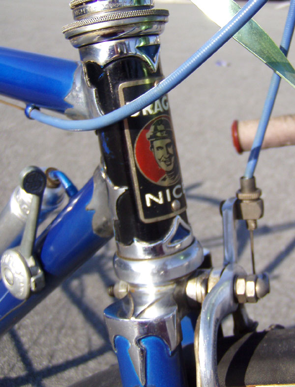“It also seems that about the same time the “smiling stayer” (Francois Urago) head badge was swapped for a “sticker” version and by the mid ’70’s these had been replaced by a version of the eagle crest more often seen on the seat tube. The latest frame I have come across retaining a metal head badge being a 1971 frame.”