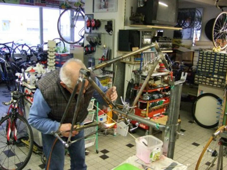 “His shop is a live museum of ultra rare parts and bikes (FES and Textima, for example), and the man himself is full of amazing stories. He does frame building classes, too. If you’re lucky, you might even meet Olaf Ludwig himself who lives nearby and often drops in.”