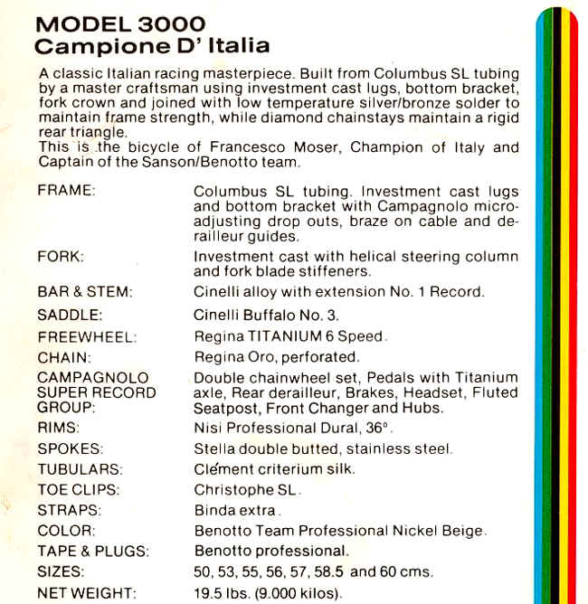 Advertisement featuring mod. 3000" Tour of Italy" and the maestro, Giacinto Benotto.