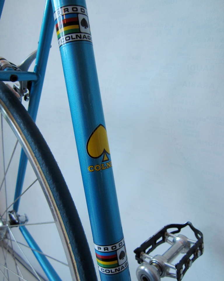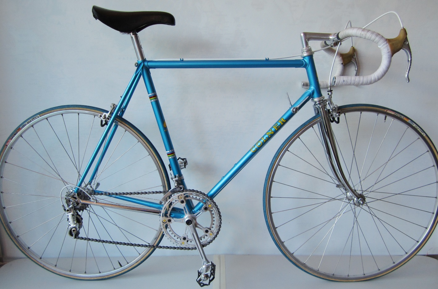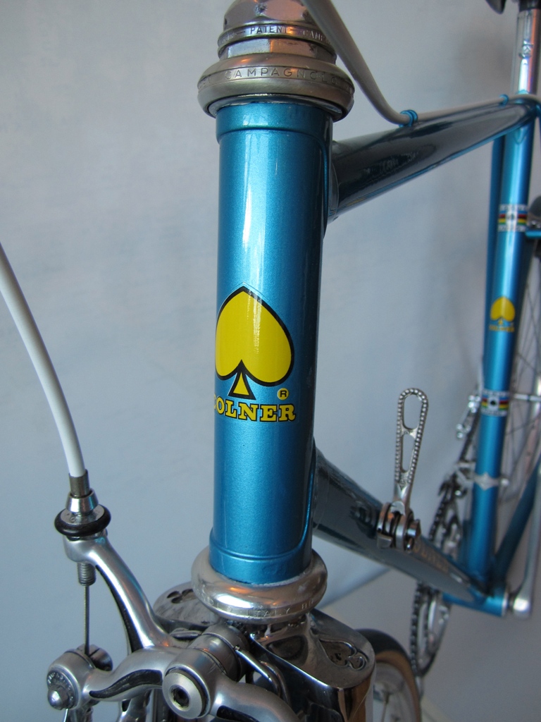” The frames were very attractive and no doubt very roadworthy but less elaborate than the Colnago CX, Arabesques etc of that time. Colners could be compared with good brands such as Ciocc, Pinarellos. Olmos etc in their looks and build quality – good Italian workhorses. From the front they were readily recognizable by their head transfer- a black Ace of Spades.”