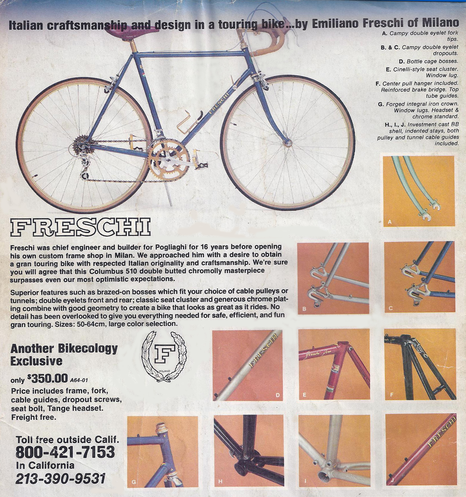 “Emiliano Freschi had been chief engineer and builder for Sante Pogliaghi before going out on his own.” Cyclart