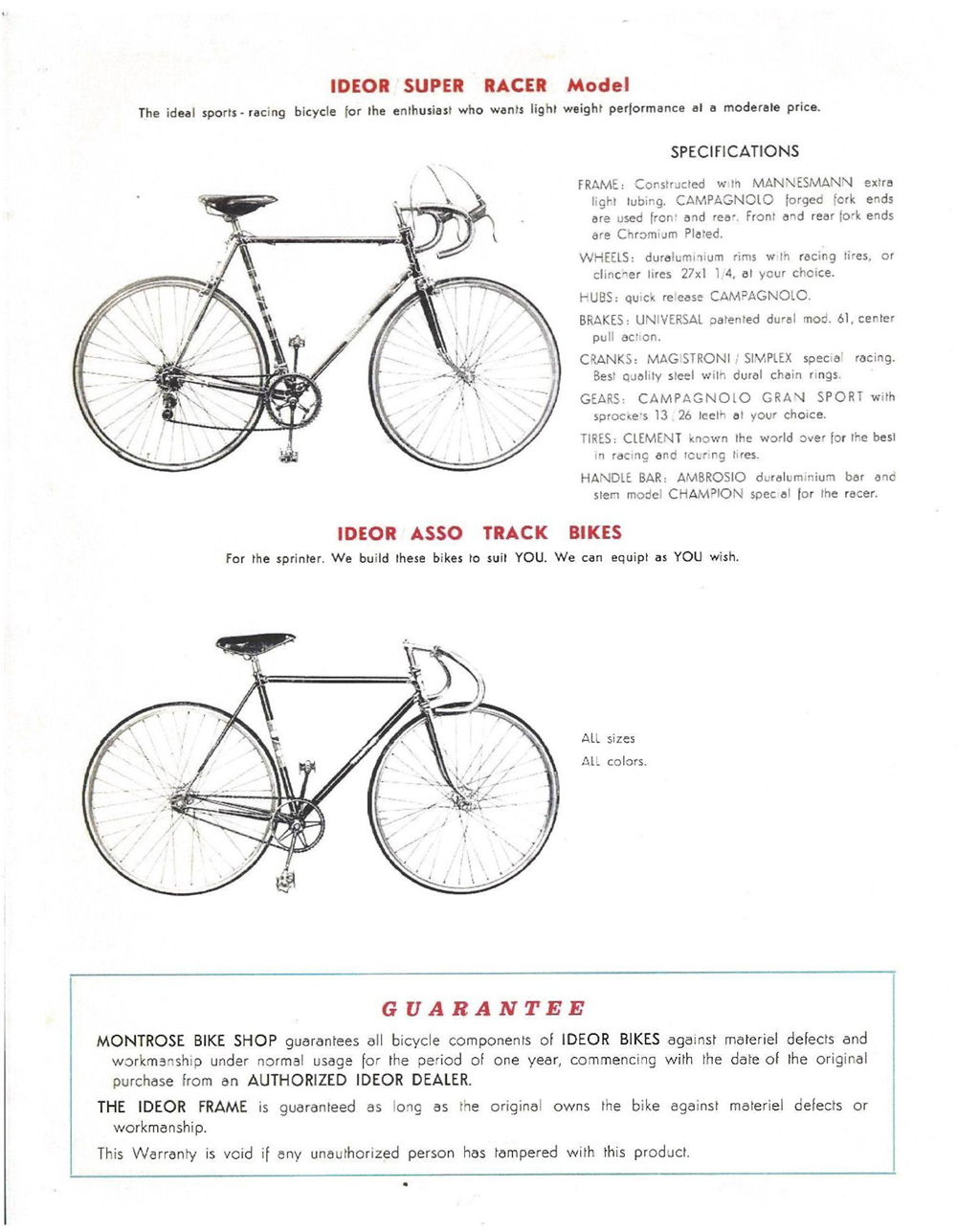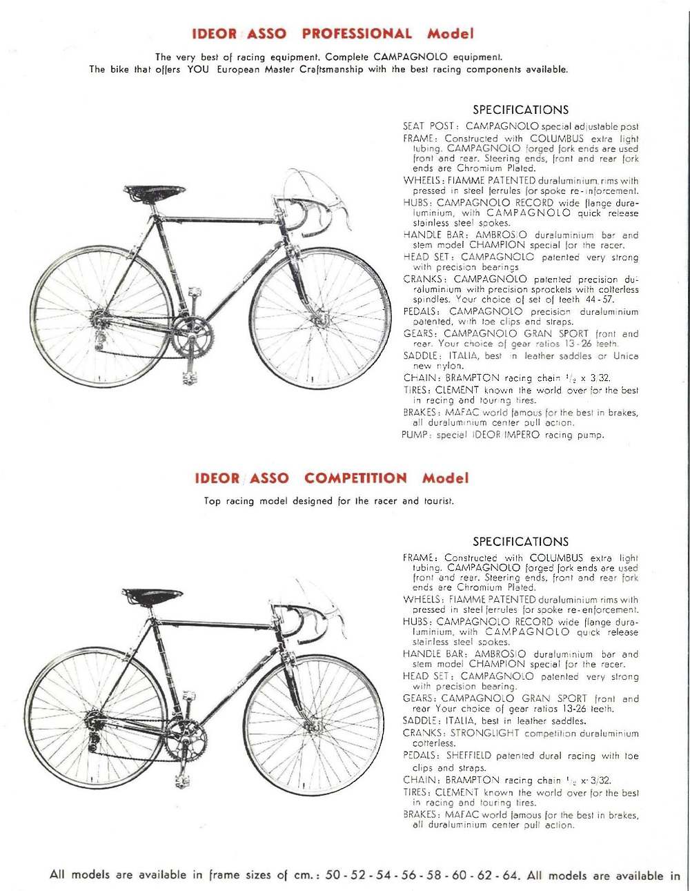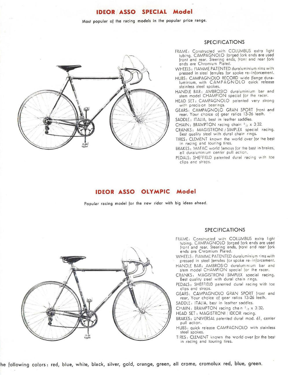 “The top Ideor models featured early Columbus tubing. Lower models used Mannesmann tubing. They are very similar in style to Olmo (and about 10 km away) and several other Italian makers of the era. The company also built city bikes, etc.”