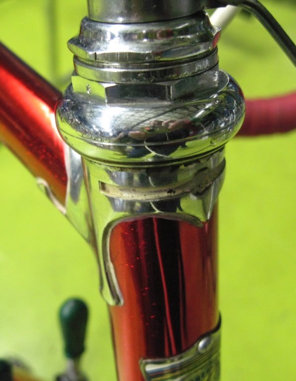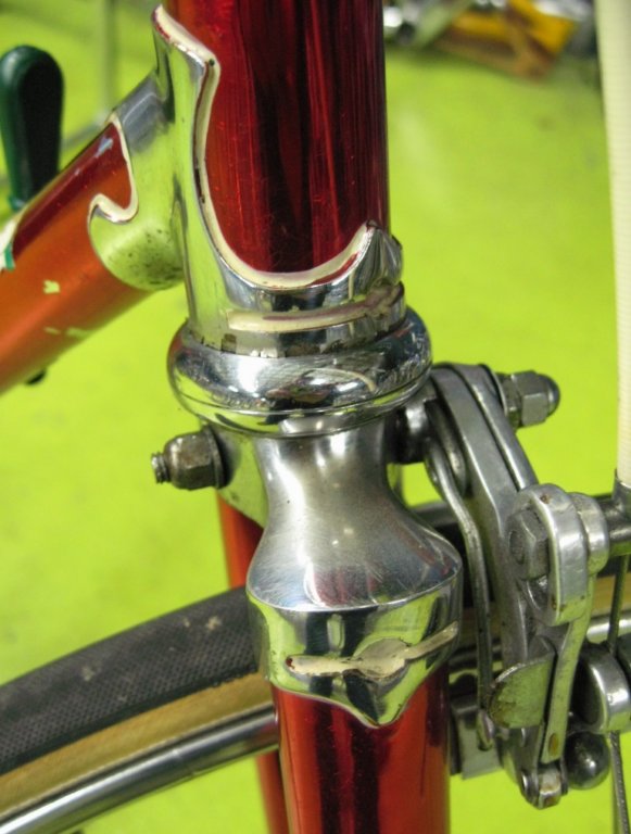 “Depending on the model, Ideor machines featured either Ideor-branded Magistroni headsets and seat collars, as well as Magistroni cranks, and Campy Gran Sport components. As you went up the line Campy cranks, headsets and other parts replaced Magistroni. They take a very low-stack-height headset, often hard to find.”