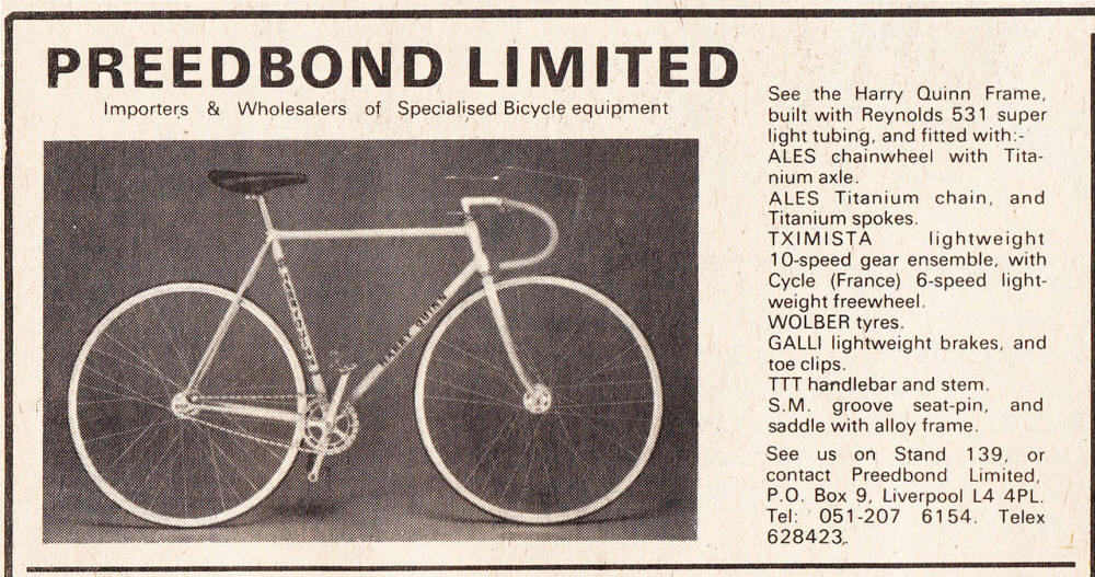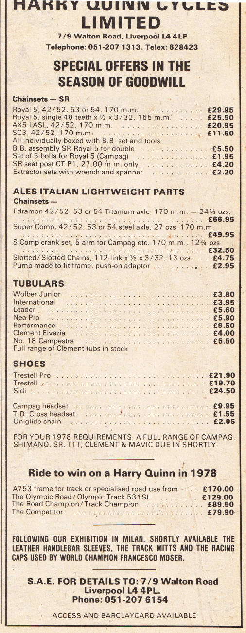 Harry Quinn cycles advertisement featuring A.LE.S. components