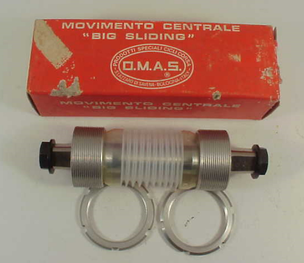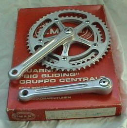This firm eventually was absorbed by the Vincenza company, Brevetta Internazionale Campagnolo. O.M.A.S. then began to manufacture various components of the Campagnolo group, collaborating with Campagnolo until 1977. (They supplied the titanium bolts and ti pedal and BB axles for the Super Record group –ed)