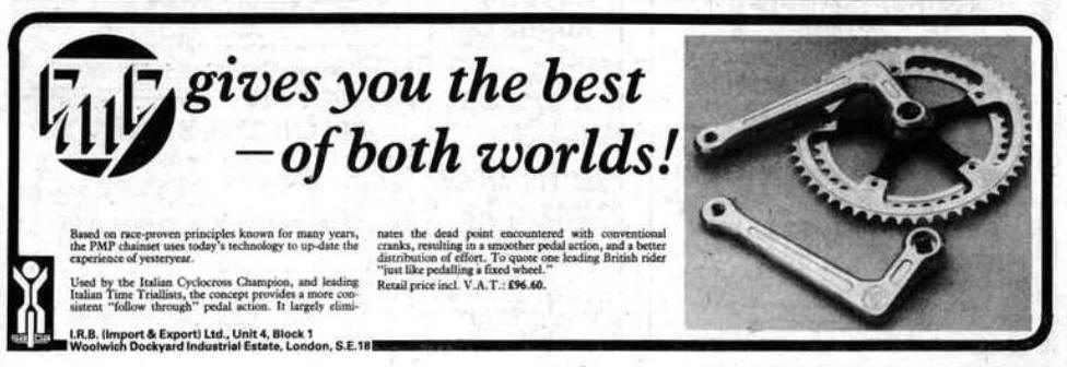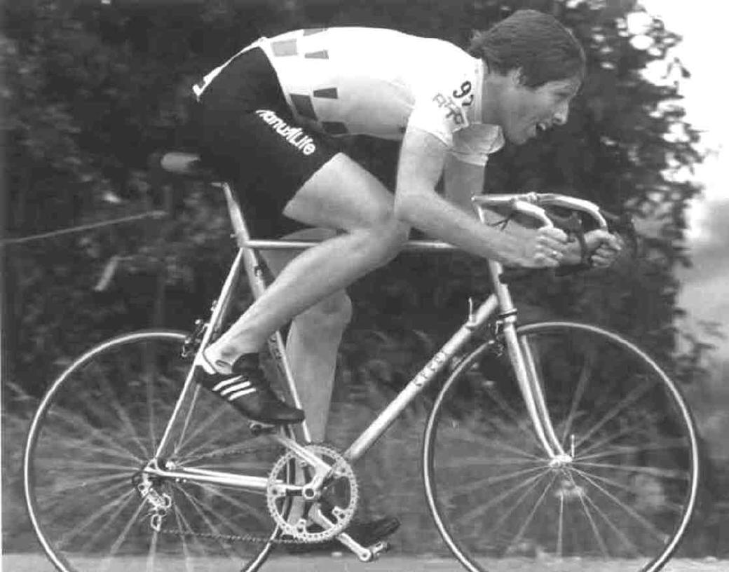 The great 1980s time triallist Ian Cammish at speed using PMP cranks