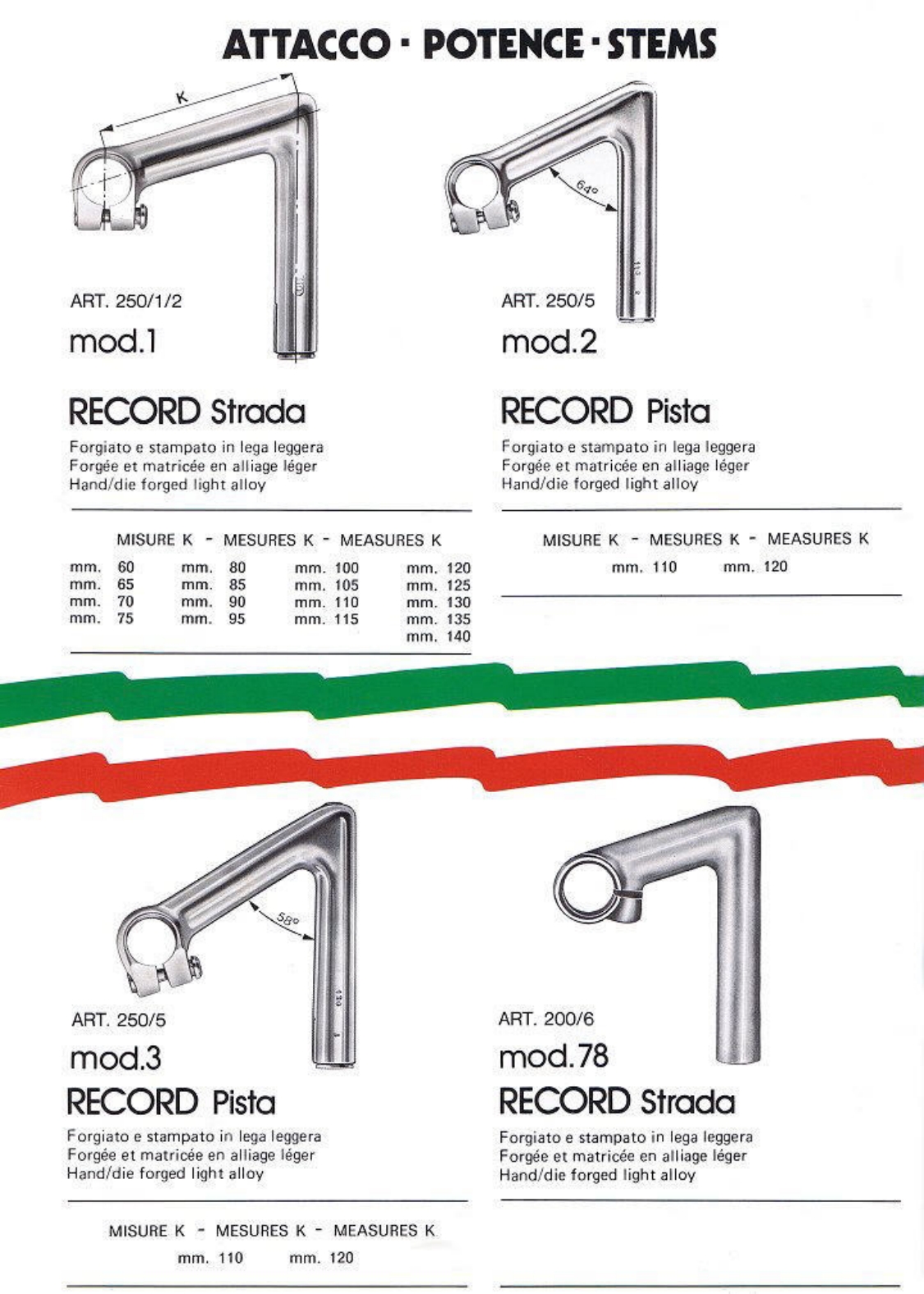 Wholesale for an Ambrosio “Champion” stem in 1964 was $2.65. By 1980 the retail price for a TTT “Record” stem had soared to $16.95!”