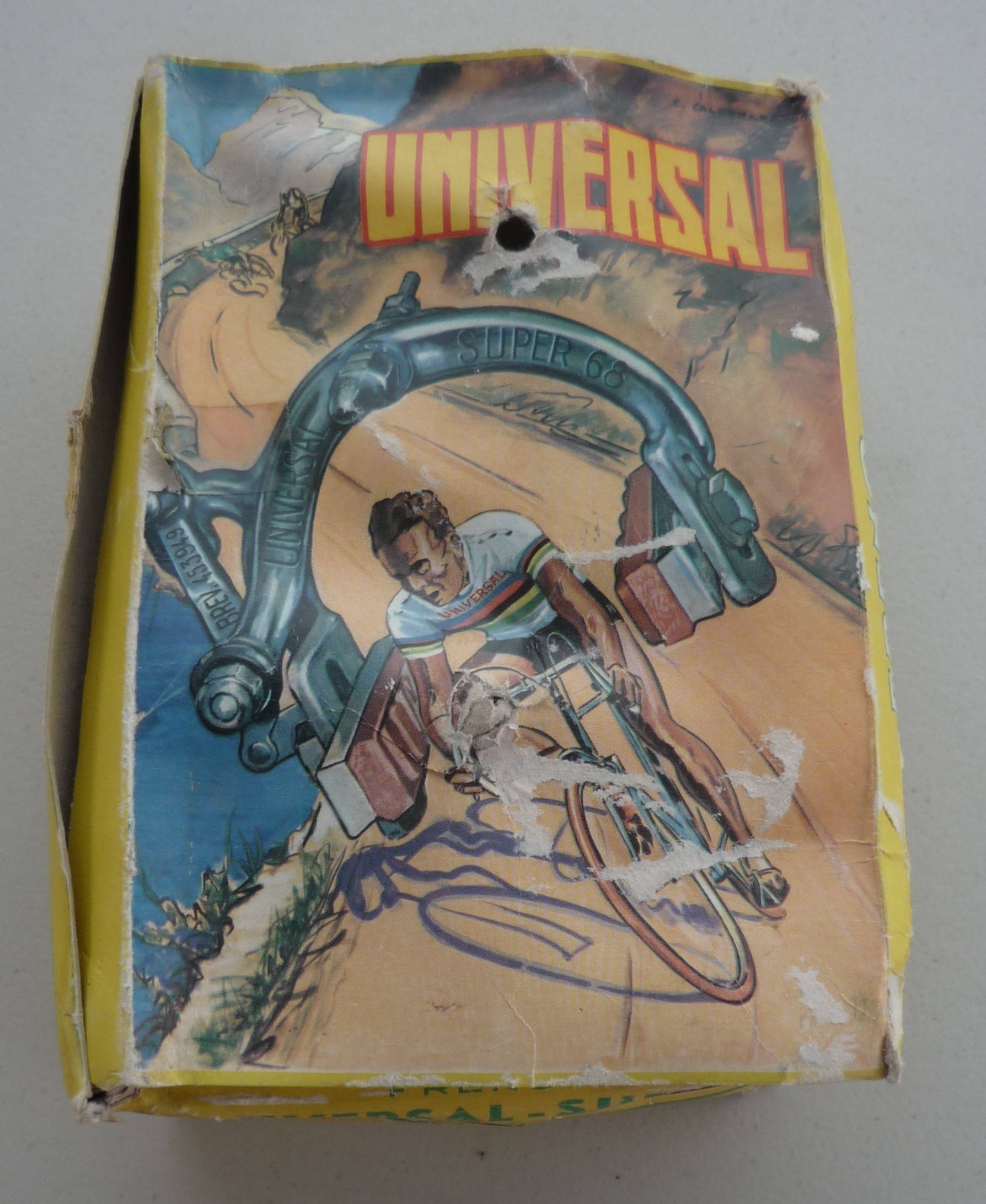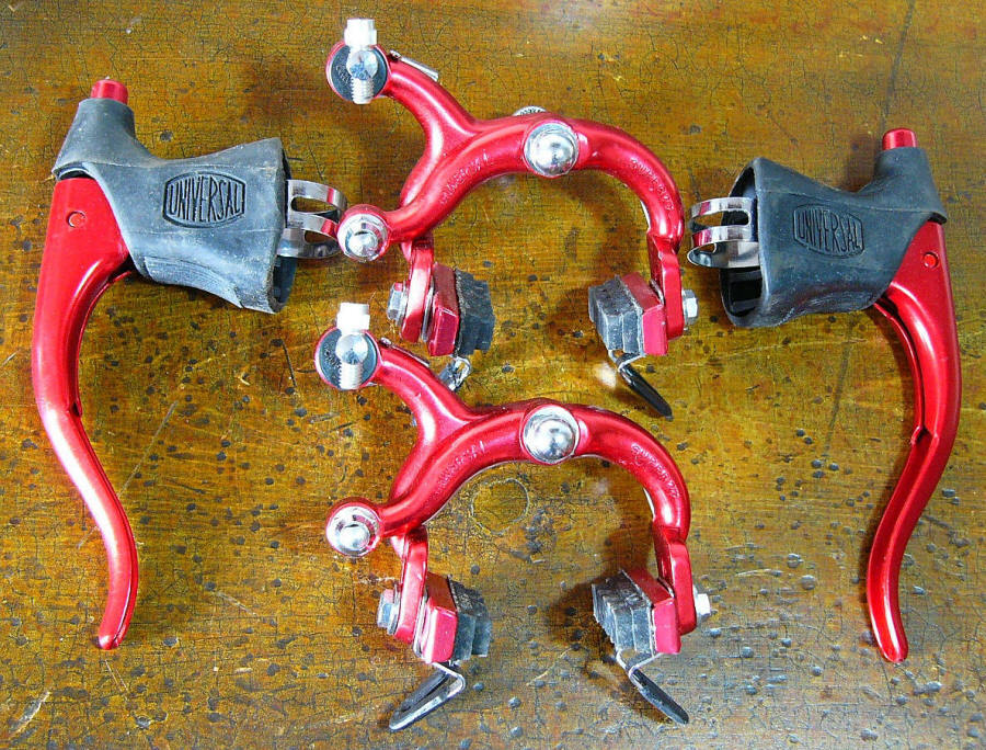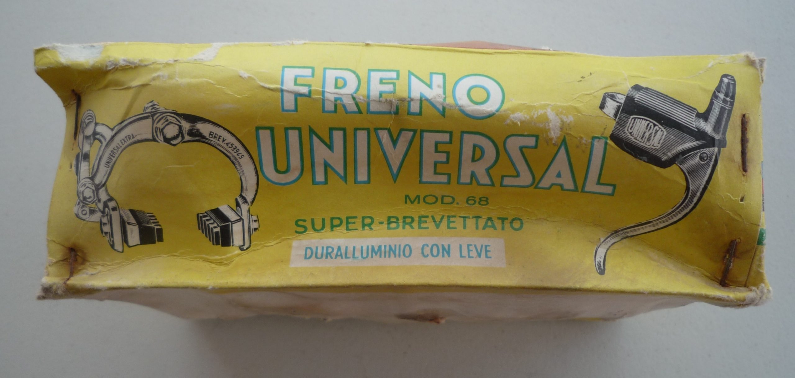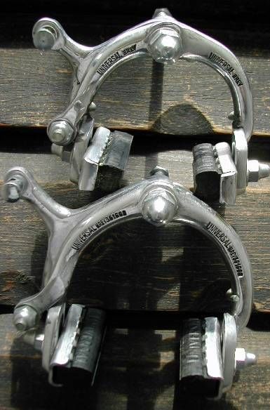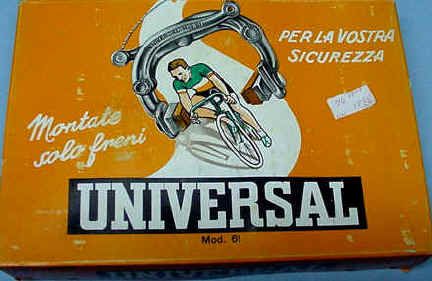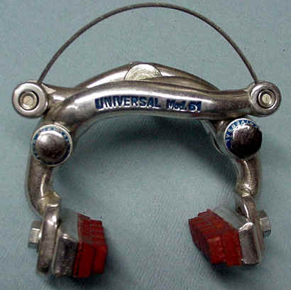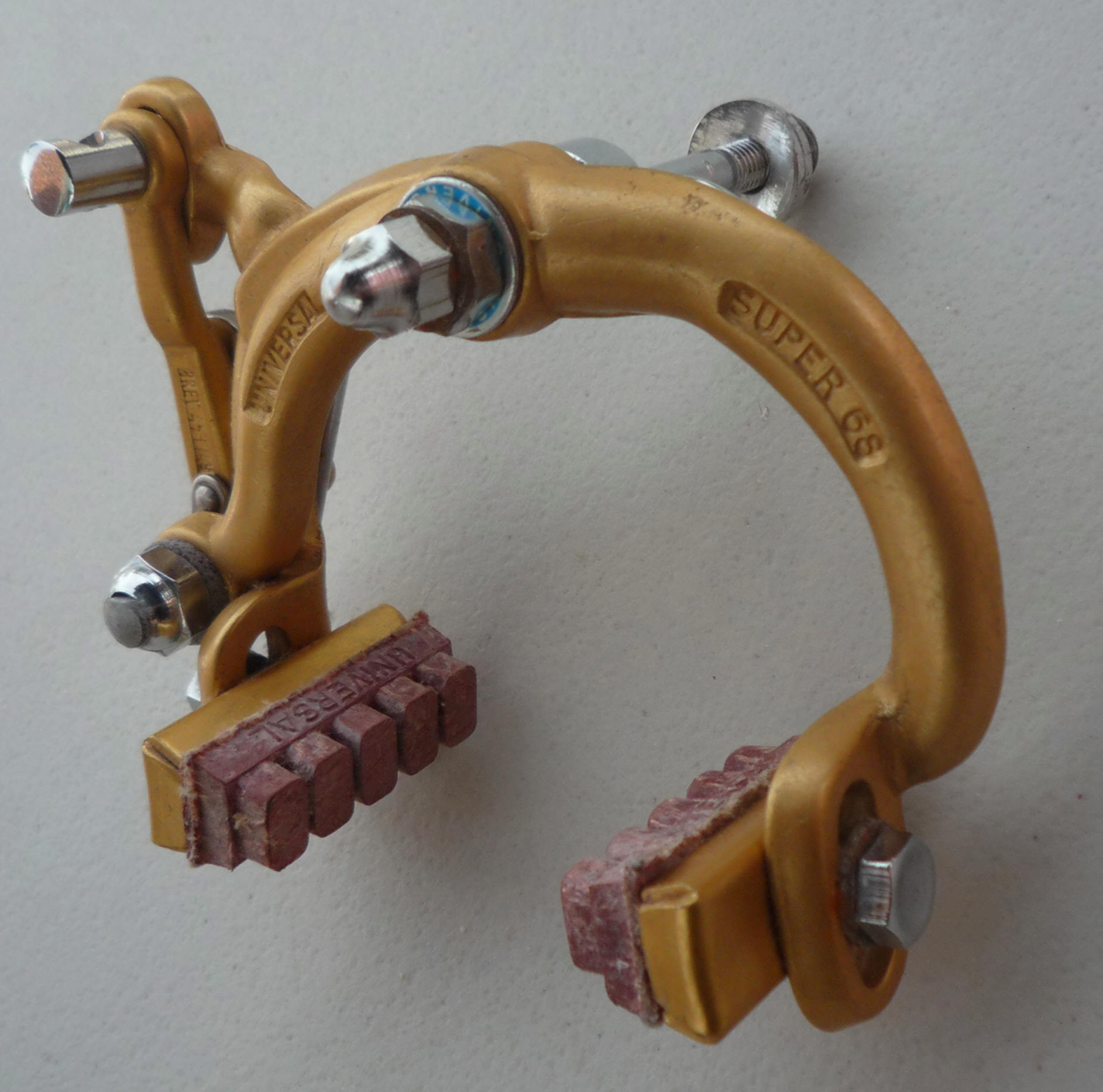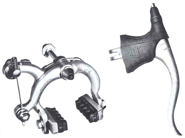 “Universal (Italy) brakes were around pre-WWII. Not sure if they were making aluminum alloy versions pre-war (I have seen late-30s Bianchi with them, but don’t know if the alloy ones were put on the bike by the owner at a later date). There were #51 (alum. side-pull, early-50s), #61 (alum. center-pull, early-60s), #68 (alum. side-pull, mid-late-60s). The #61 was their response to the Mafac Racer center-pull, and the #68 was their answer to the Campagnolo side-pull.