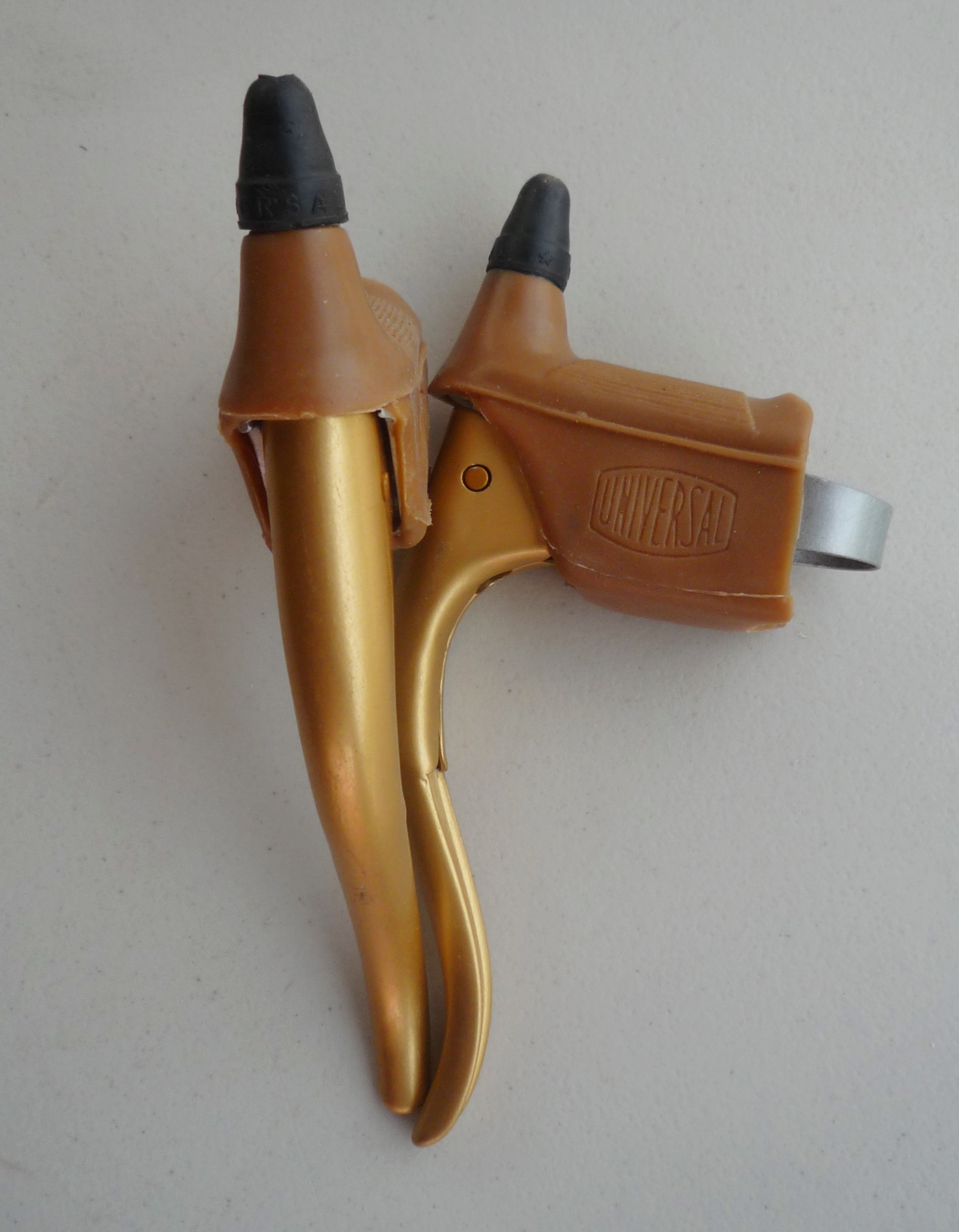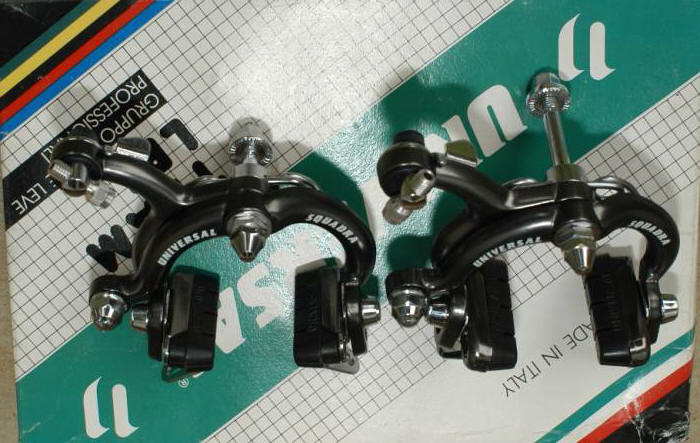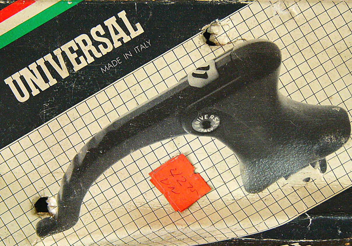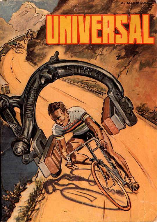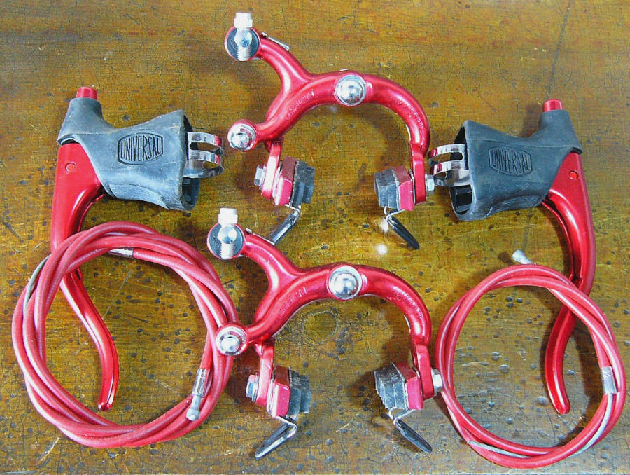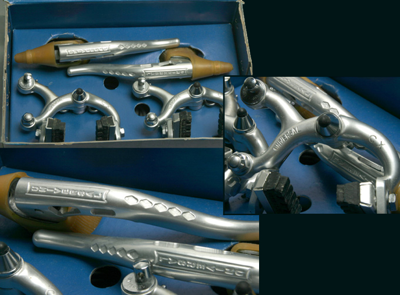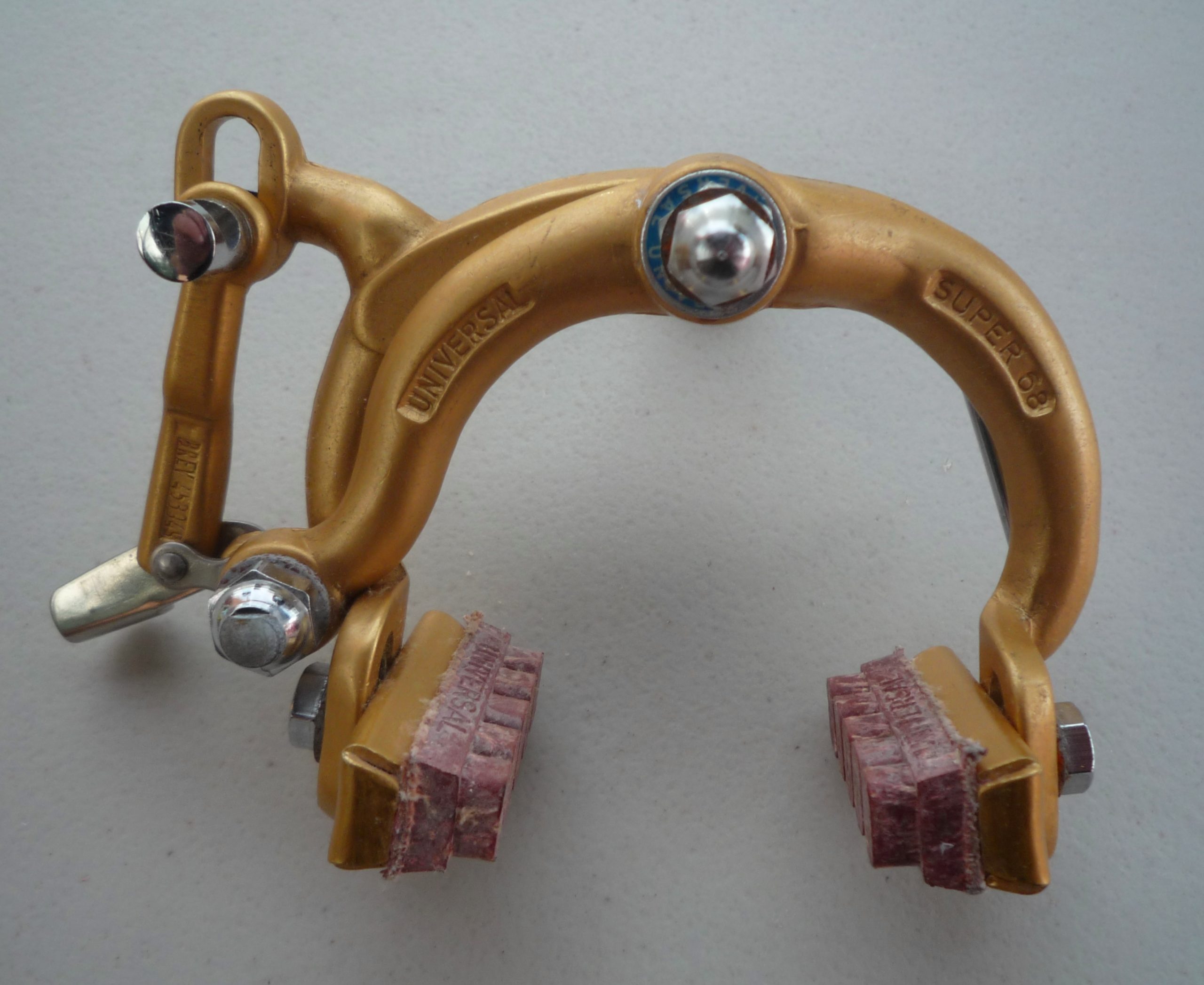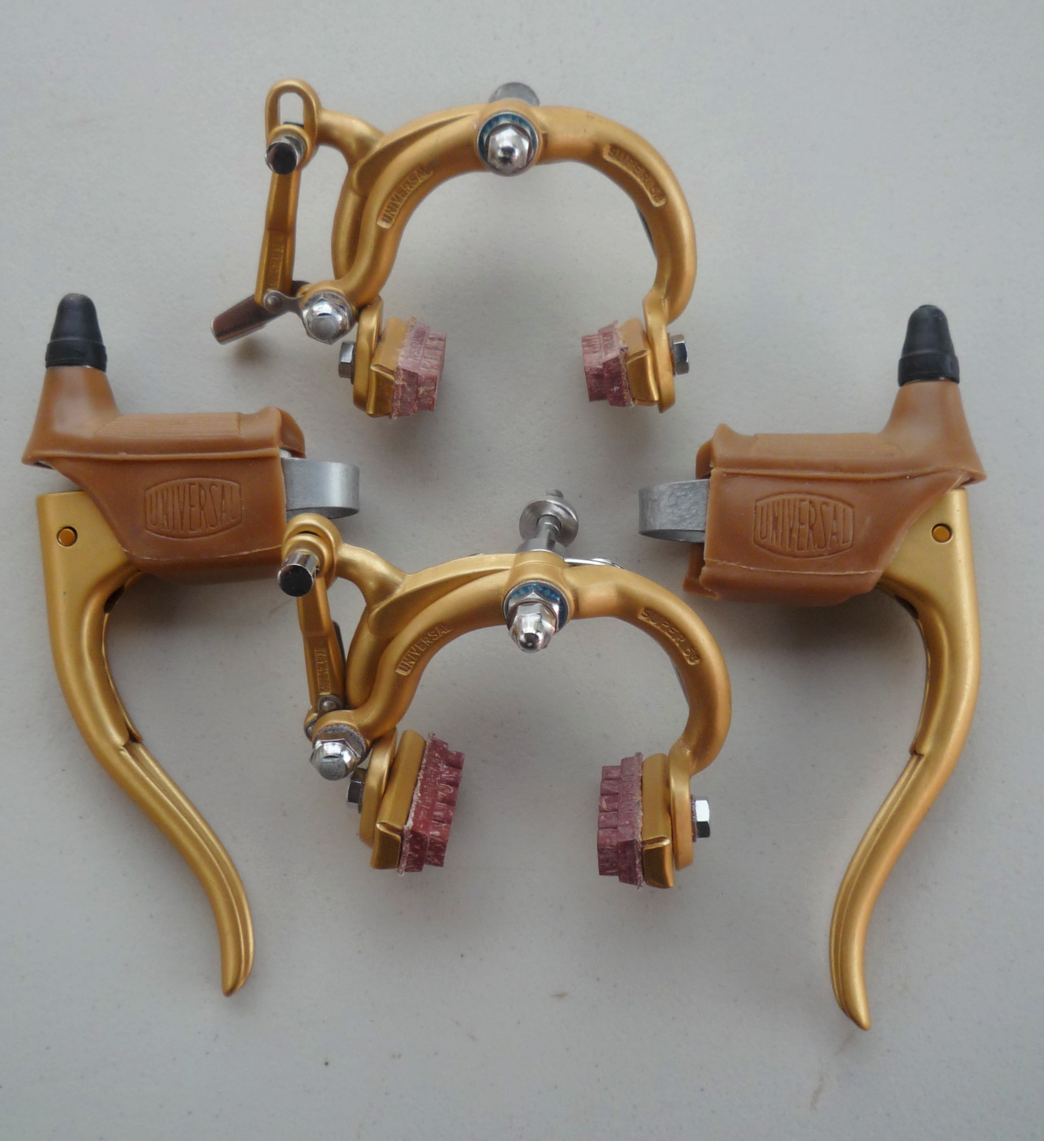 “Universal (Italy) brakes were around pre-WWII. Not sure if they were making aluminum alloy versions pre-war (I have seen late-30s Bianchi with them, but don’t know if the alloy ones were put on the bike by the owner at a later date). There were #51 (alum. side-pull, early-50s), #61 (alum. center-pull, early-60s), #68 (alum. side-pull, mid-late-60s). The #61 was their response to the Mafac Racer center-pull, and the #68 was their answer to the Campagnolo side-pull.