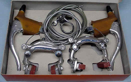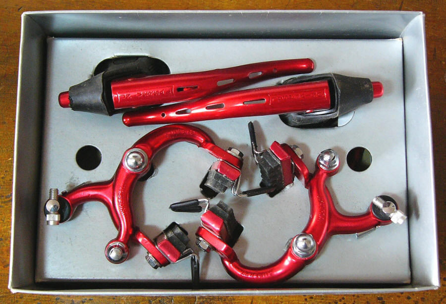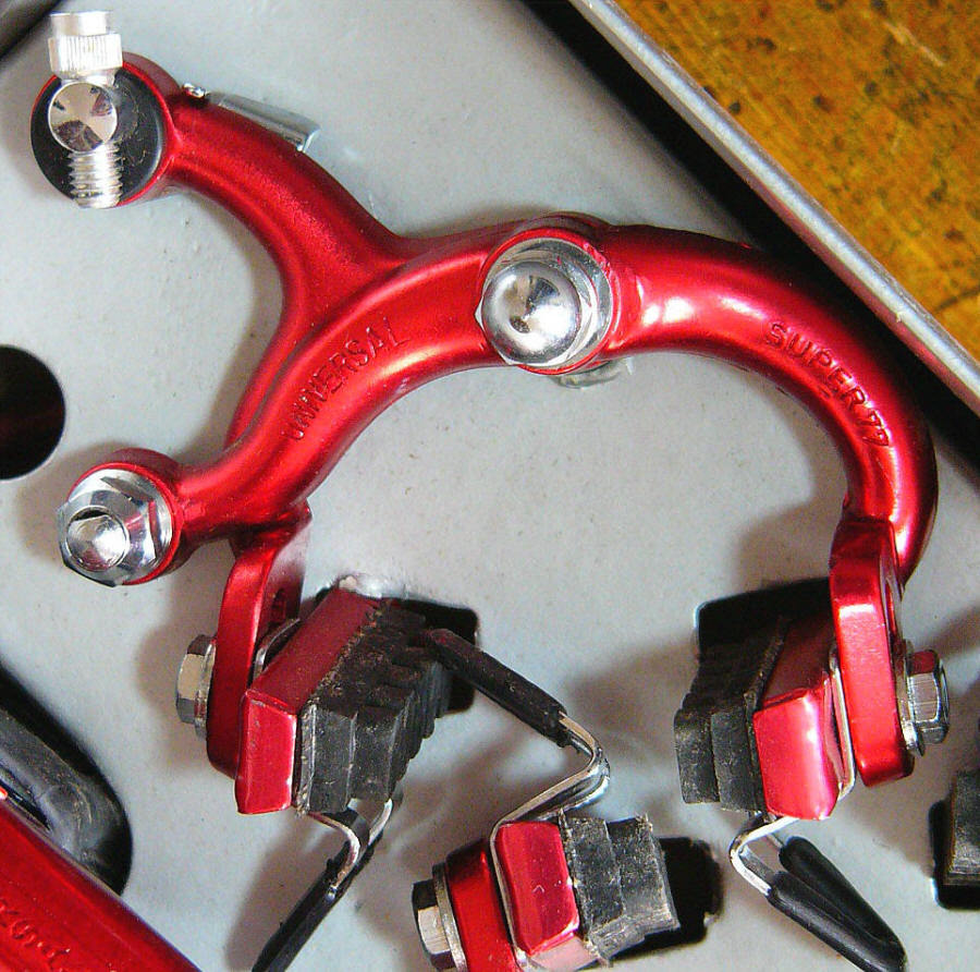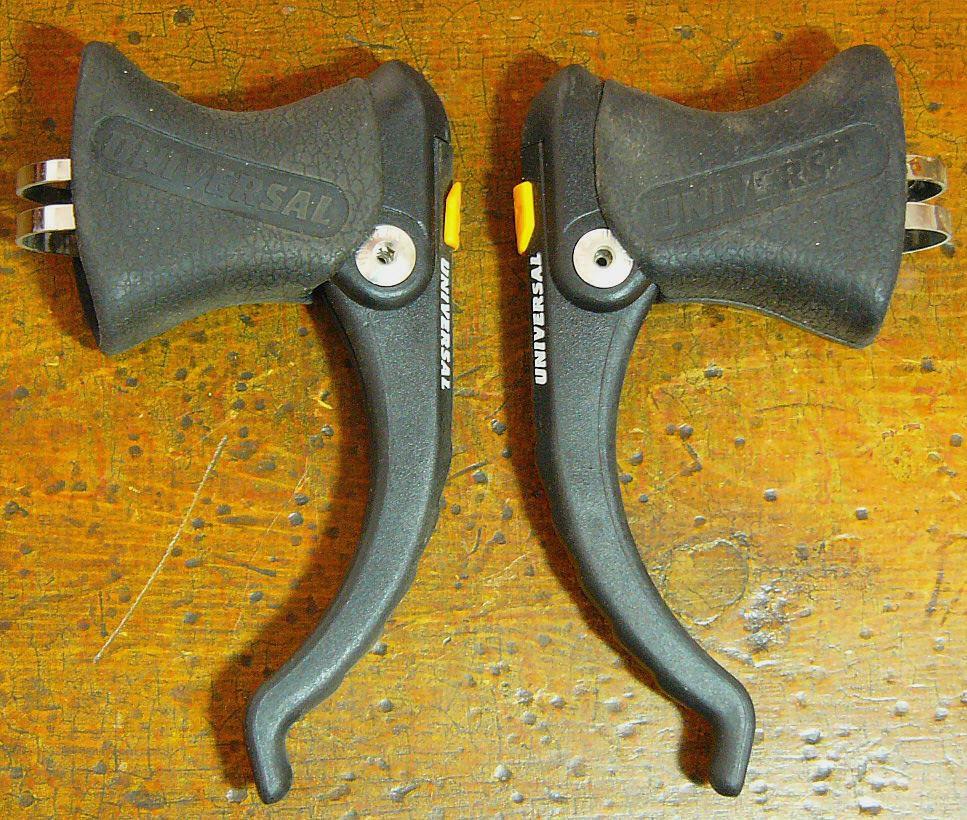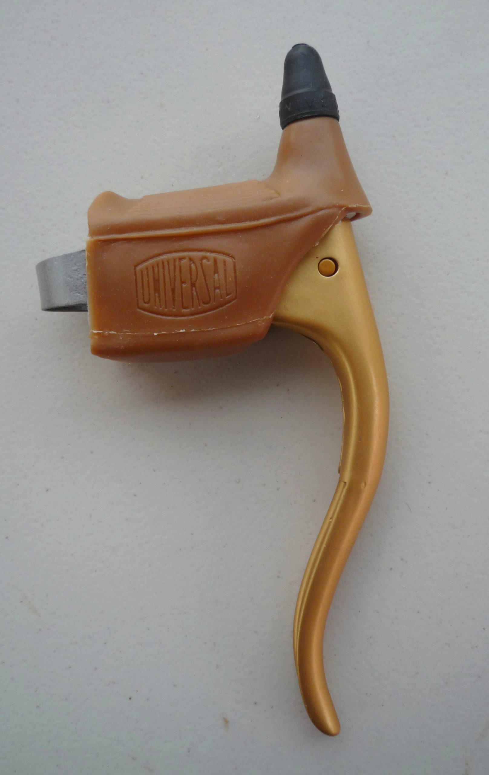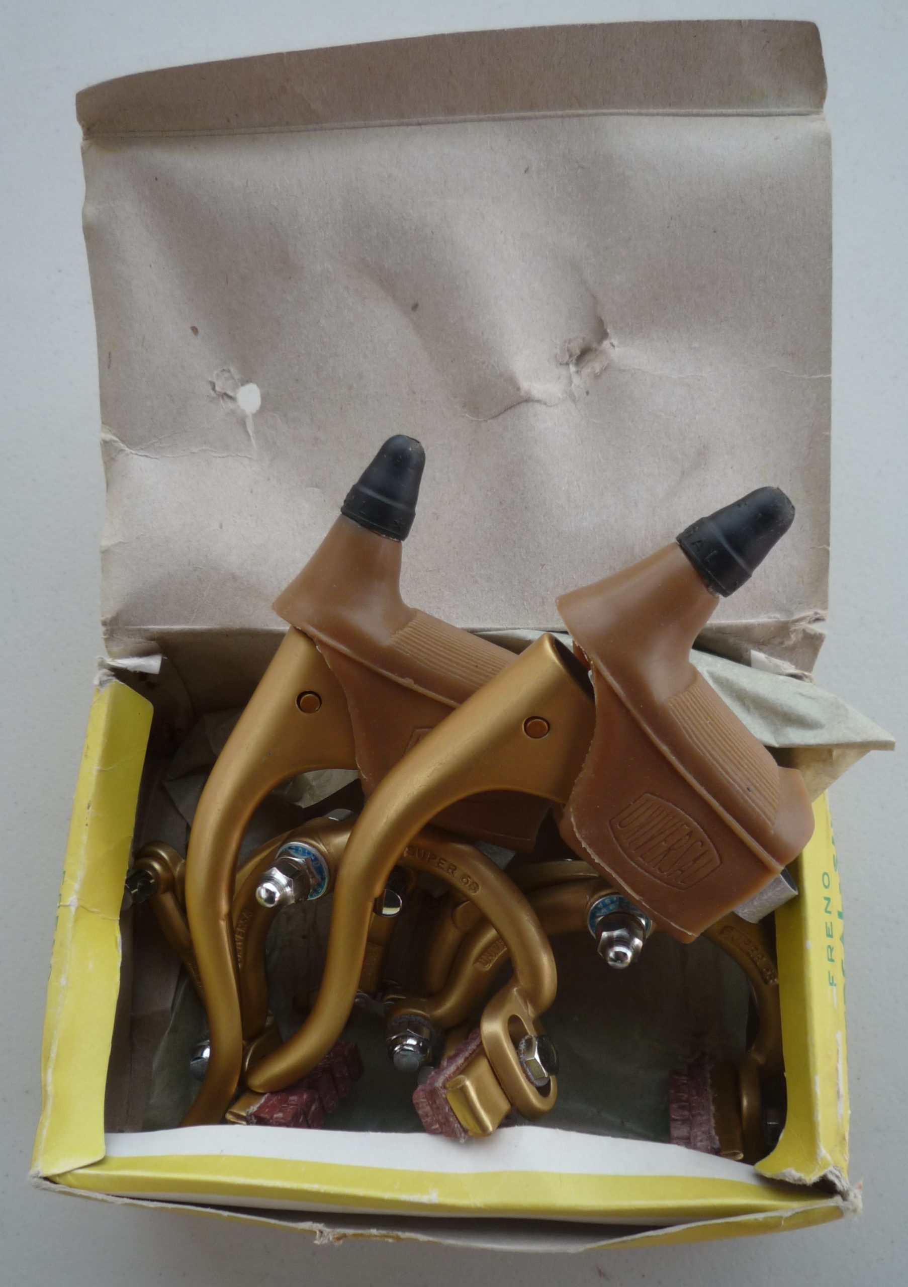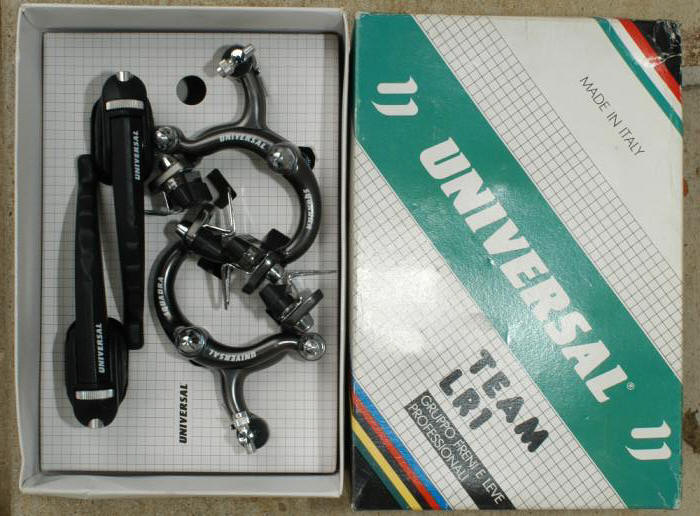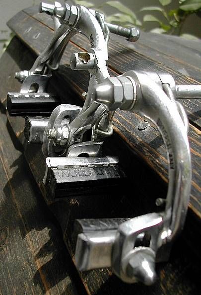 “Universal (Italy) brakes were around pre-WWII. Not sure if they were making aluminum alloy versions pre-war (I have seen late-30s Bianchi with them, but don’t know if the alloy ones were put on the bike by the owner at a later date). There were #51 (alum. side-pull, early-50s), #61 (alum. center-pull, early-60s), #68 (alum. side-pull, mid-late-60s). The #61 was their response to the Mafac Racer center-pull, and the #68 was their answer to the Campagnolo side-pull.