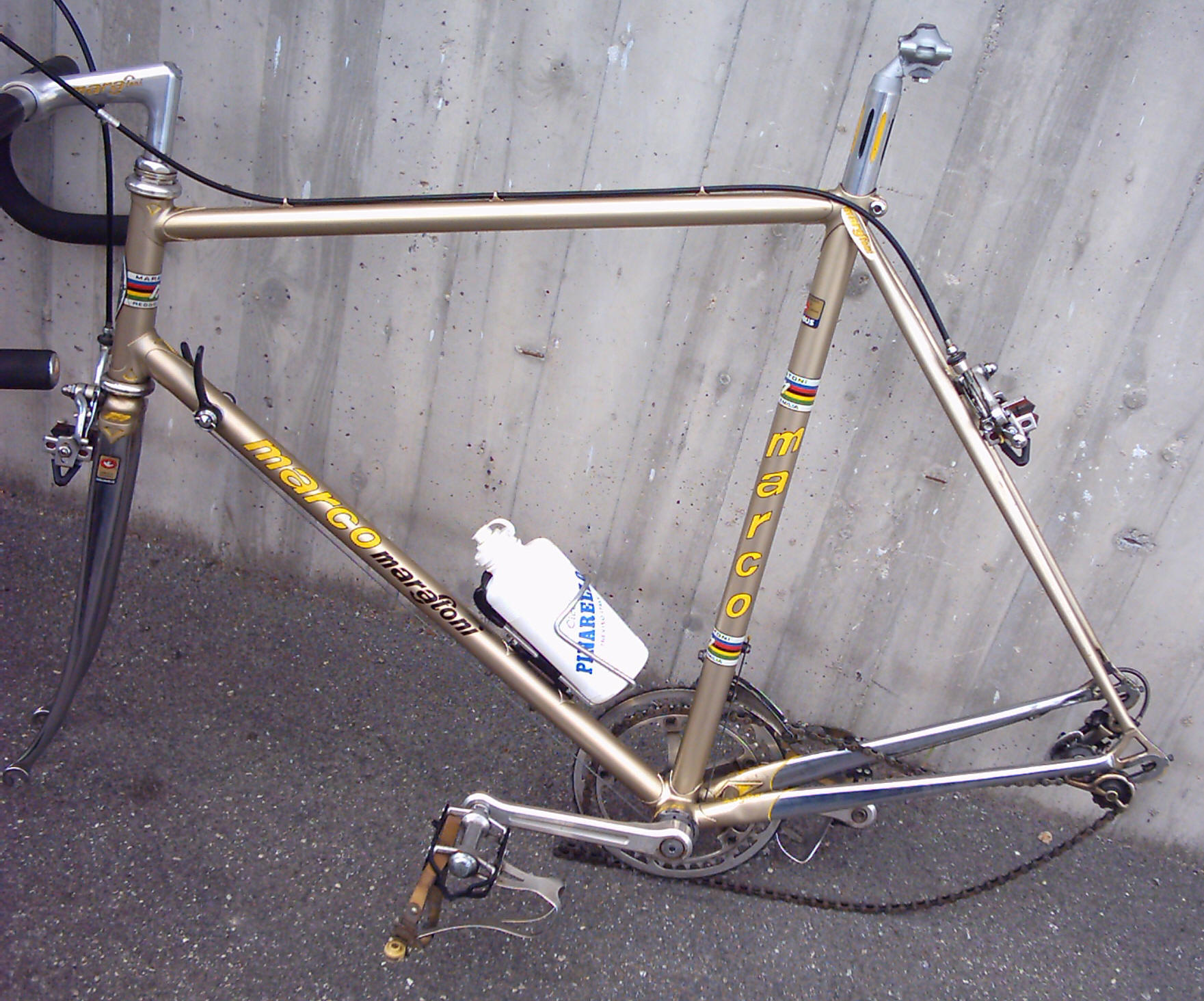 His only child, Marco Marastoni, was in fact killed in a car accident while on his way to work in Parma. Licinio was devastated and completely lost interest in the IC frame bits and even stopped building bikes for a while. This was the lowest point of his life. He only decided to return by popular request after a hiatus of about one year. To honor his lost son, he then began to: a) decal his better frames as Marco Marastoni (and then only if he knew they were going to somebody who would respect the bike!), b) sponsor a rather important local race (the Marco Marastoni Memorial race was run from 1973 until 1996) and c) changed the name of the local bicycle club that he sponsors to “Club Marco Marastoni”.