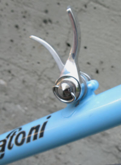 His annual production was never all that large, but given that he produced frames for more than 60 years, there are quite a few of his bikes out there. He built his last frames in the late 90’s. His frames show great care and many show unusual flourishes not usually found on the frames of other builders. Beyond perhaps the first use of IC frame parts, he was indeed one of the first to use almost exclusively braze-on front derailleurs in the first half of the 70’s. He made a variety of different braze-on versions. He was also one of the first to braze on the centerbolts for brake calipers, as well as braze top tube cable guides and water bottle bolts (in the beginning he simply brazed on a bolt onto the down tube.