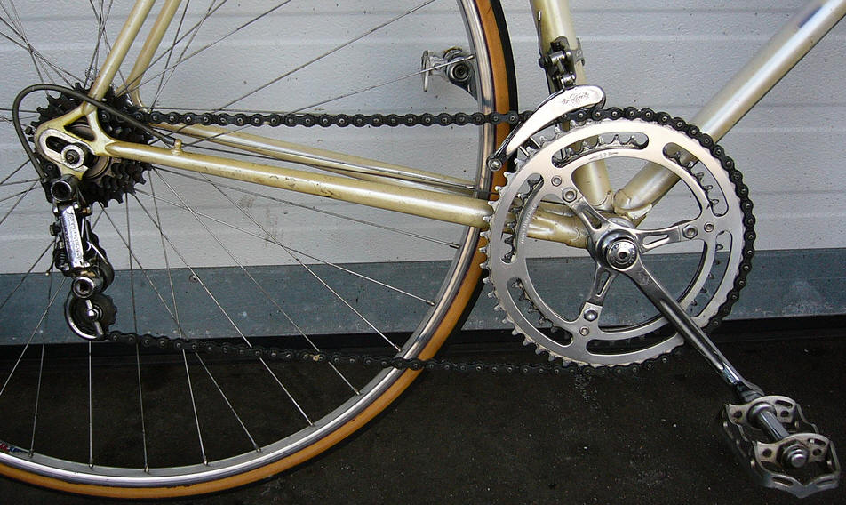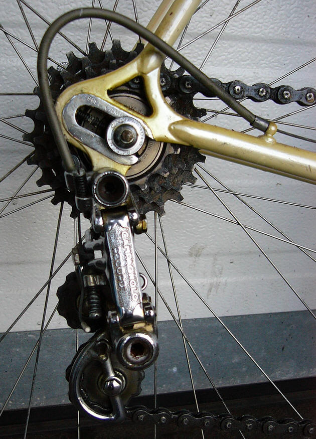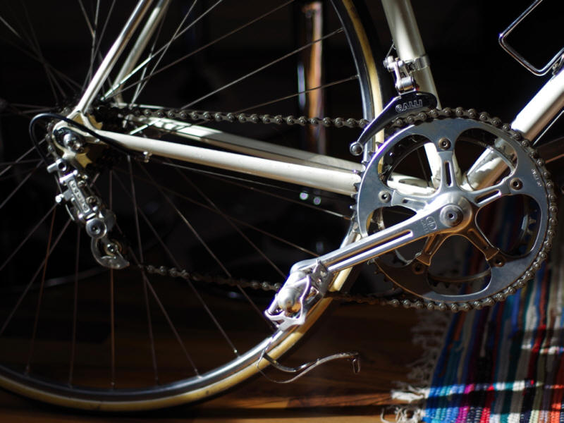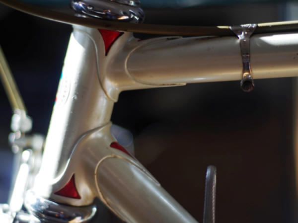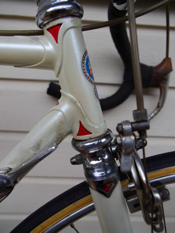 “By the late 70s, the hand painted head badge and natural pearlescent paint were gone, replaced by a decal and a more prosaic (and durable) top coat. The quality of the frames remained very high, however.”