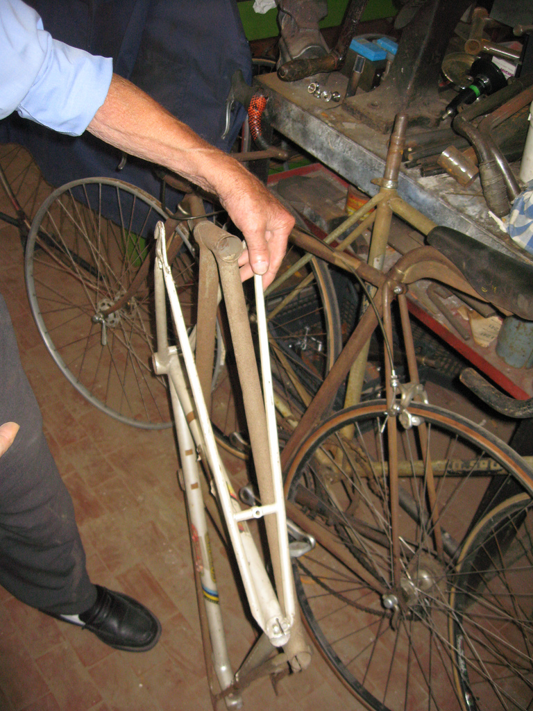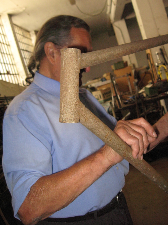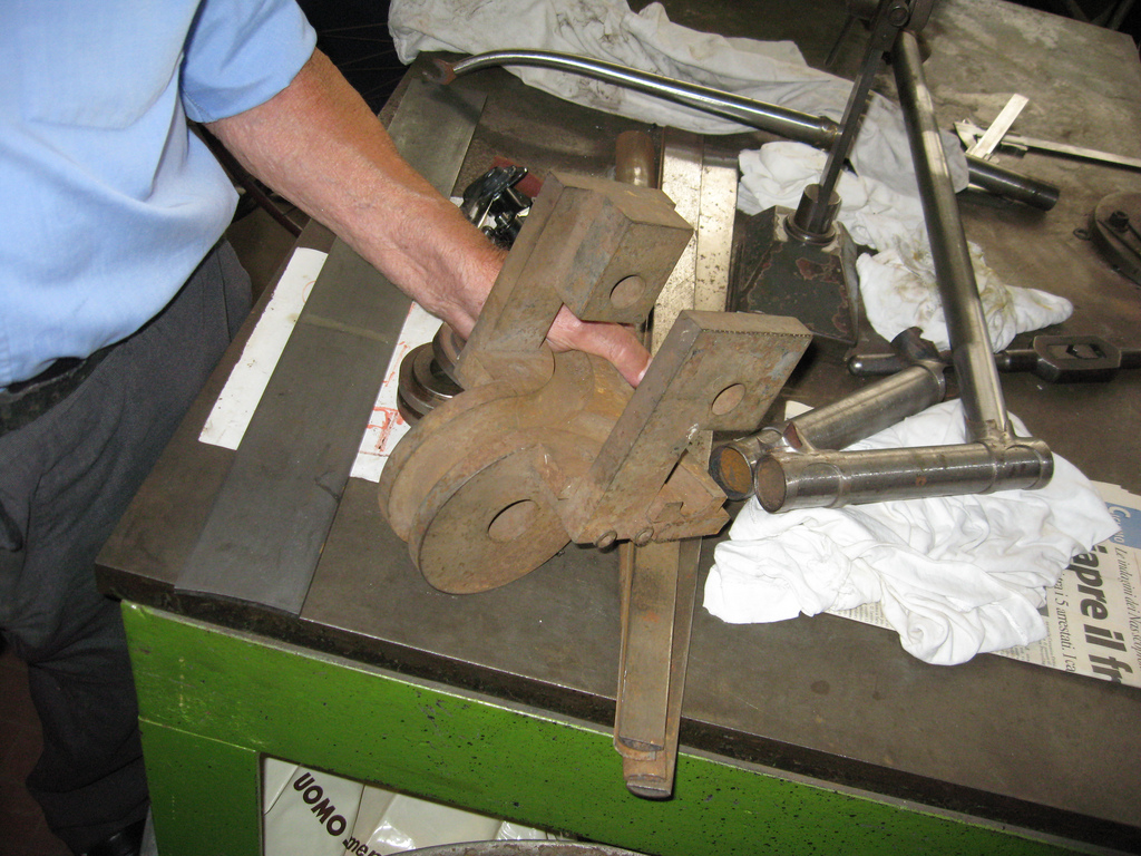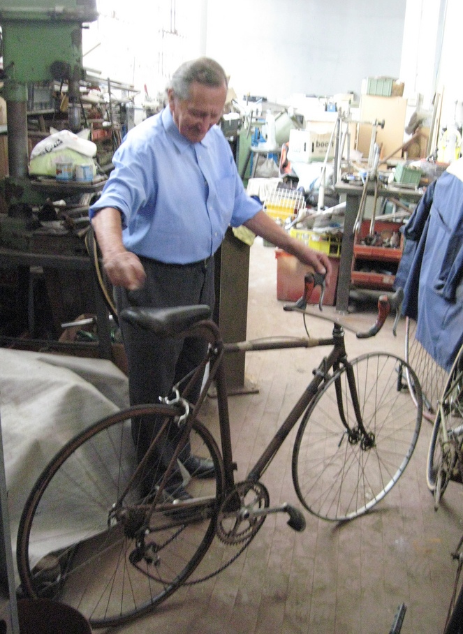 Pictured is Maestro Picchio (on the left) with his top assistant Francesco Trentin, who had been team mechanic for the Torpado team in its grandest days. All brazing was done by Picchio or Trentin.