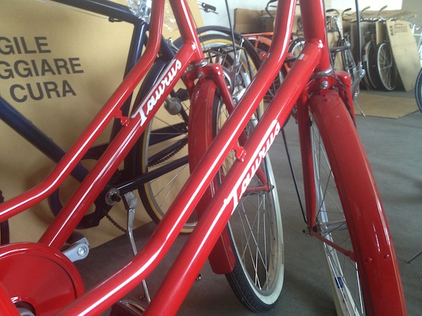 “The bicycle factory “Taurus” has German origins, the city that housed the production, Nuremberg is present in the full name: “Taurus – Nürberg” that appears, until the early 30’s, the brands of enameled metal placed on (the handlebars). In Following the assembly of bicycles is under license in Milan with (German) material. In this period we can see again the presence of cursive writing “Taurus” embossed on the front tube (later replaced by a normal decal). Later, the company became completely as the Italian bicycle production, keeping, however, a high level of components, such as hubs (by) FB, rear gear changers and front hub dynamo hub by Sturmey Archer, etc.”