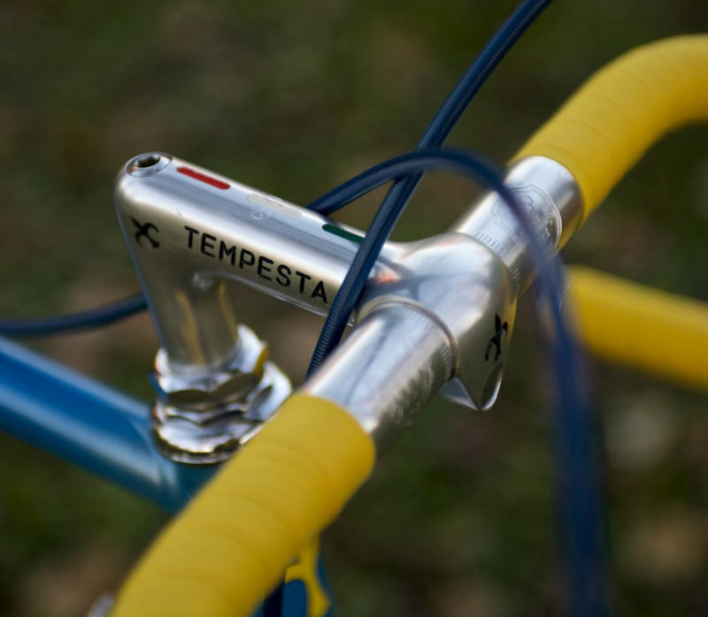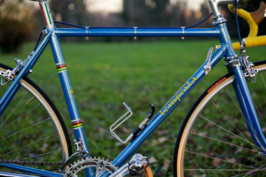The Tempesta brand began in 1930, with Vito Tempesta repairing bicycles in Terlizzi, Italy. In 1932 his son Michele was born. Michele, also called Lino, became a influential team mechanic for cycling pros an a successful custom frame maker. Finally, Lino’s son Silvio became a well known racer and then also a team mechanic to cycling stars. Silvio also was a consultant to Cinelli.