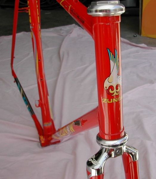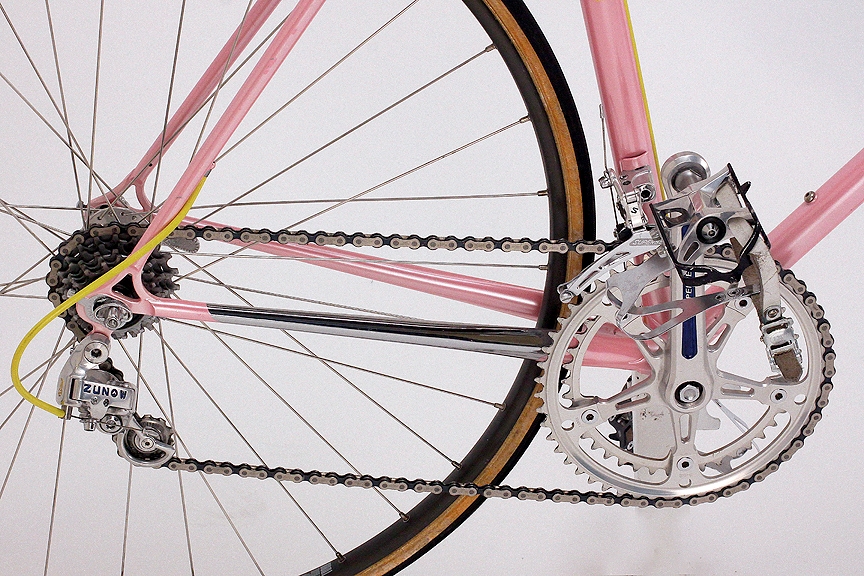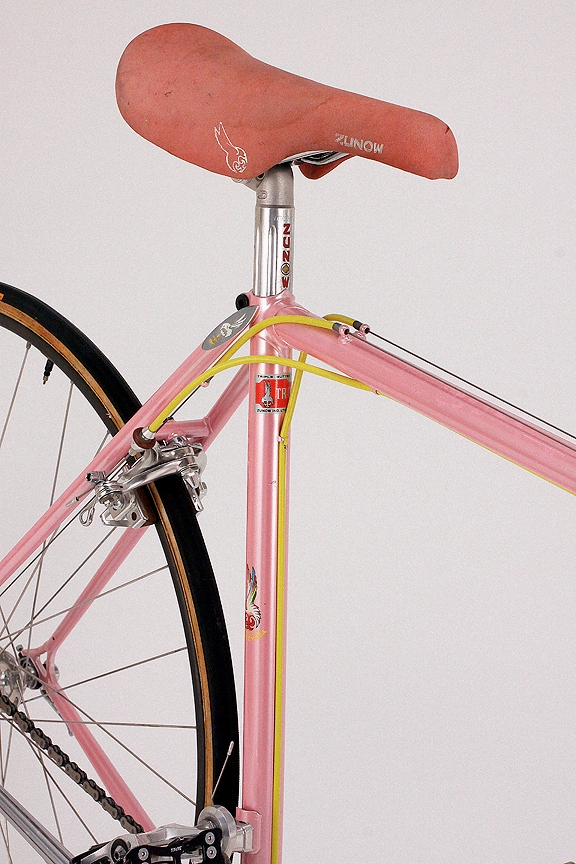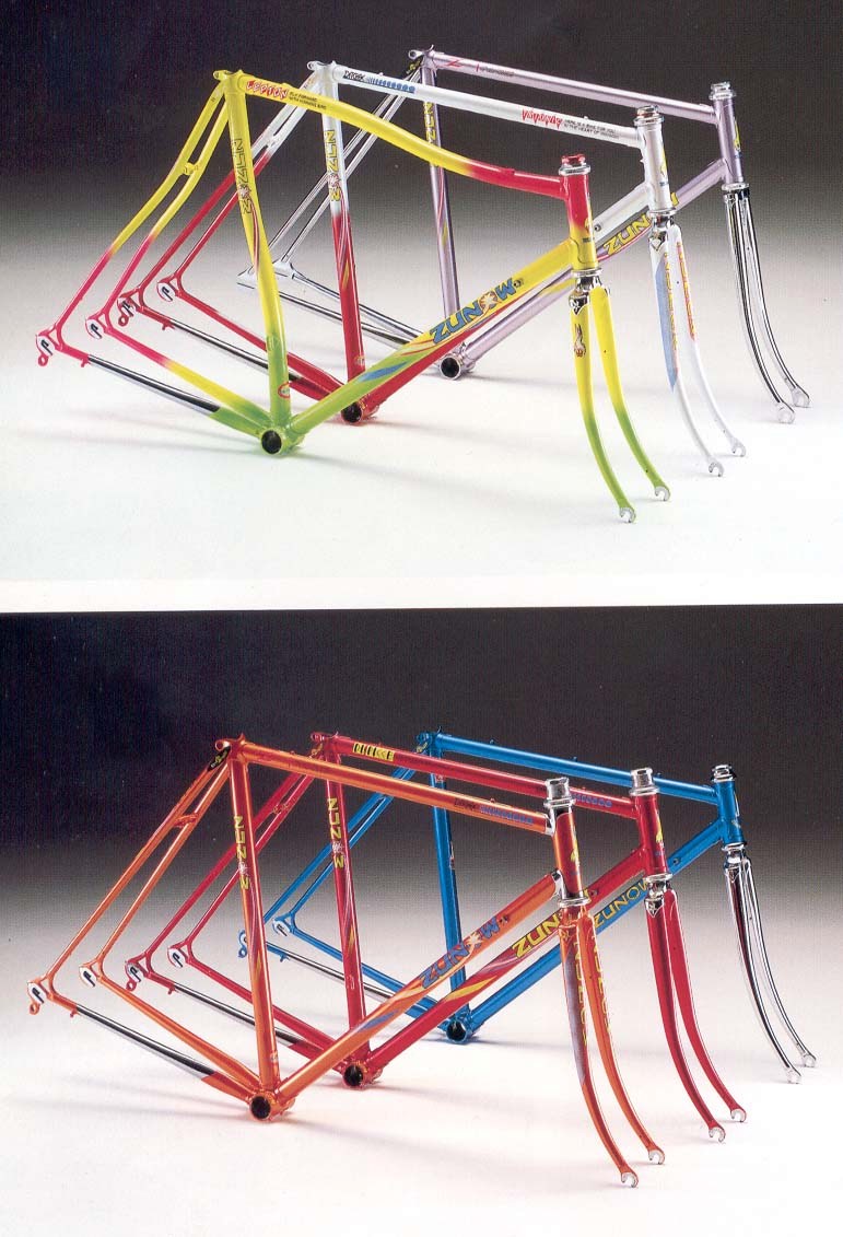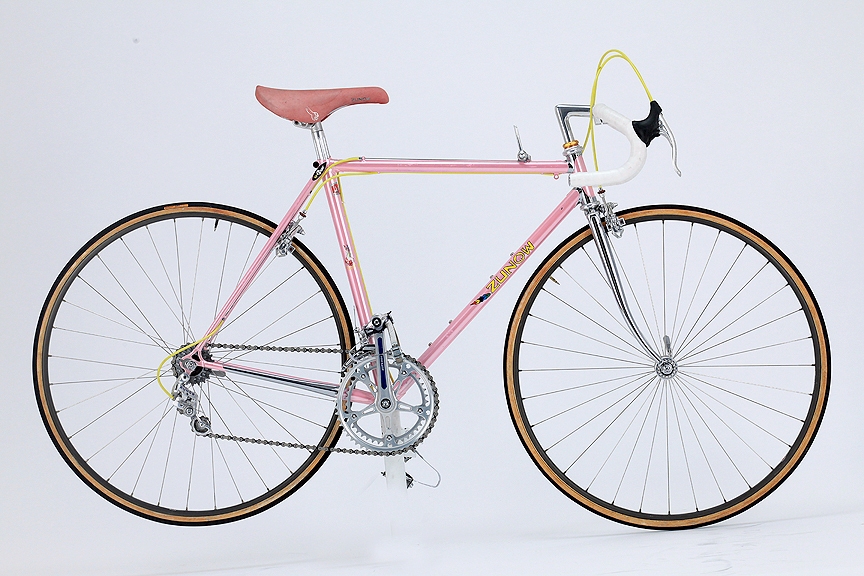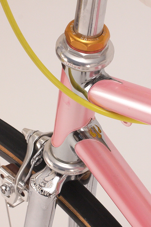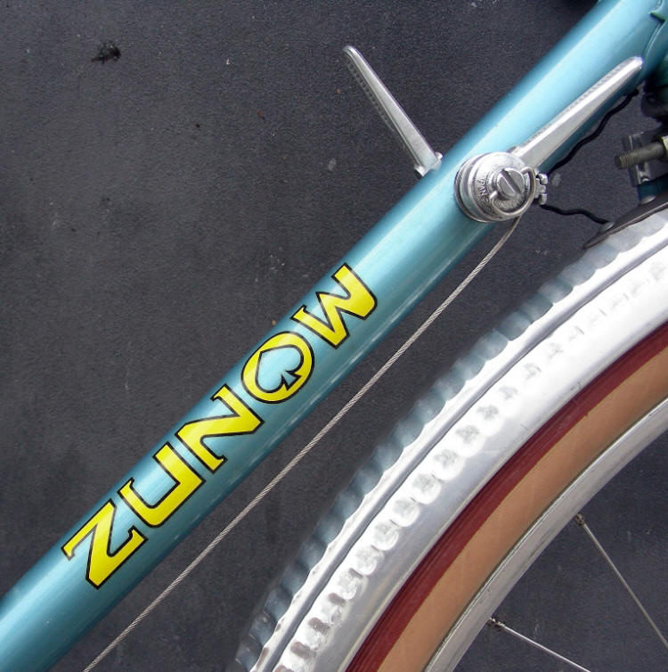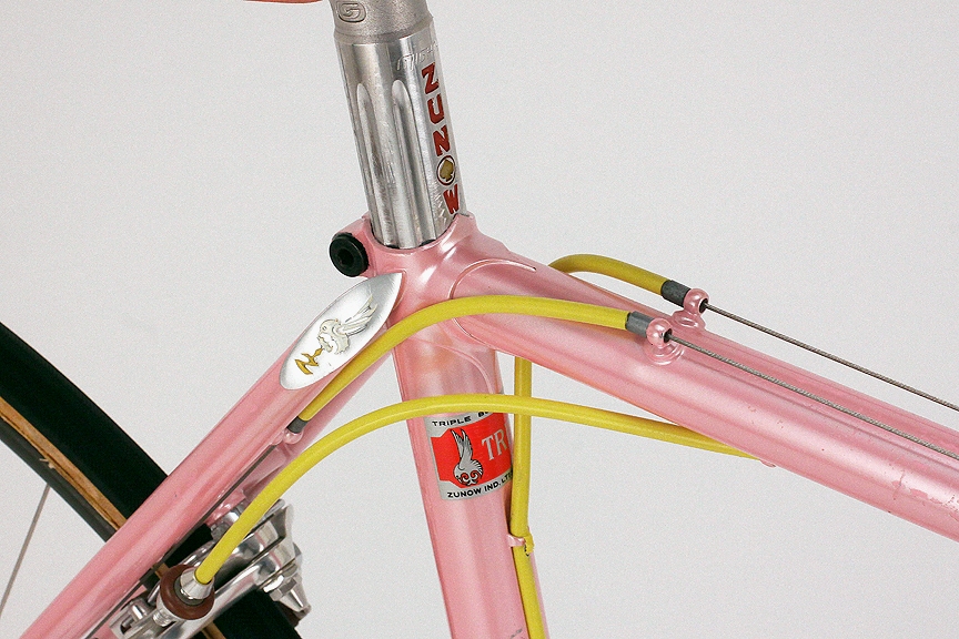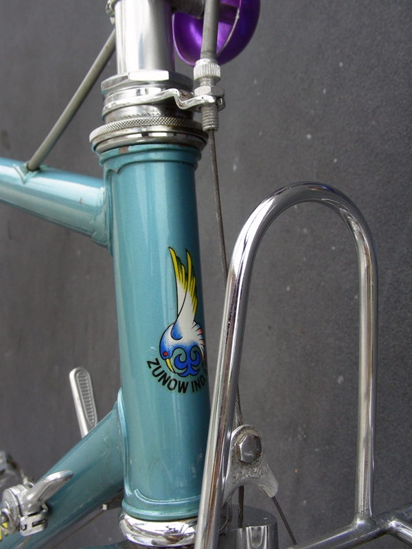 “…Early Zunow bikes (1965-1970s) were sometimes built with Nervex lugs… These bikes still have the distinctive Zunow hummingbird cast into the seat stay tops. By the late 1970s / early 1980s, Kageyama was having his own lugs made. Early versions often had a spade cut-out in the head lugs. Later, they became more ornate. (There have been) at least three iterations of the Zunow lugs sets across various bikes and catalogs.”