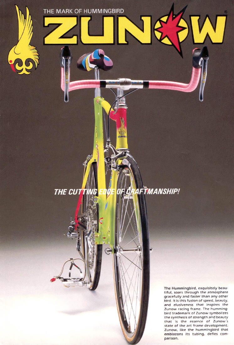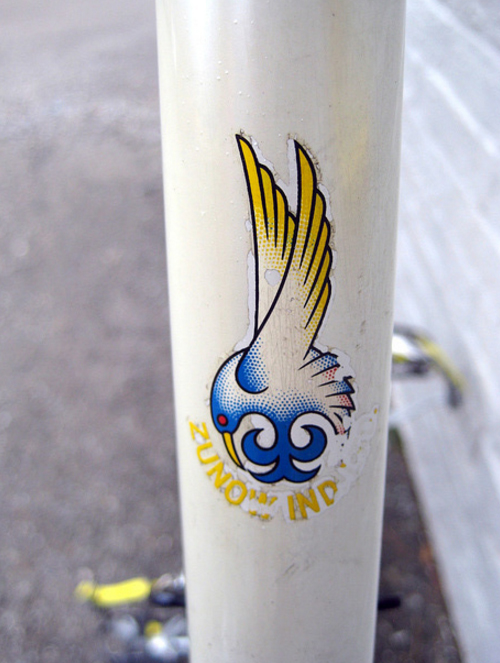 “Ooyama confirmed that Zunow means “genius” and that is the intended translation… The logo itself went through at least two permutations: the classic version with a fleur-de-lis on the bottom, and later, a sort of abstract geometric version found on the “Hummingbird” series of bikes.”