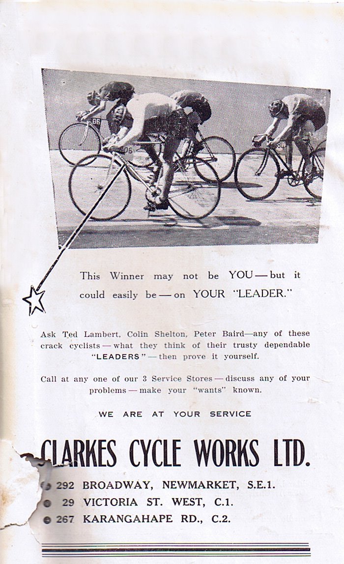 Clarkes racing frames where branded as Leader Superb until about the late 1930’s and then Leader Special post War. Clarke Cycles was one of the North Islands most important Race Frame builders of the pre war period.