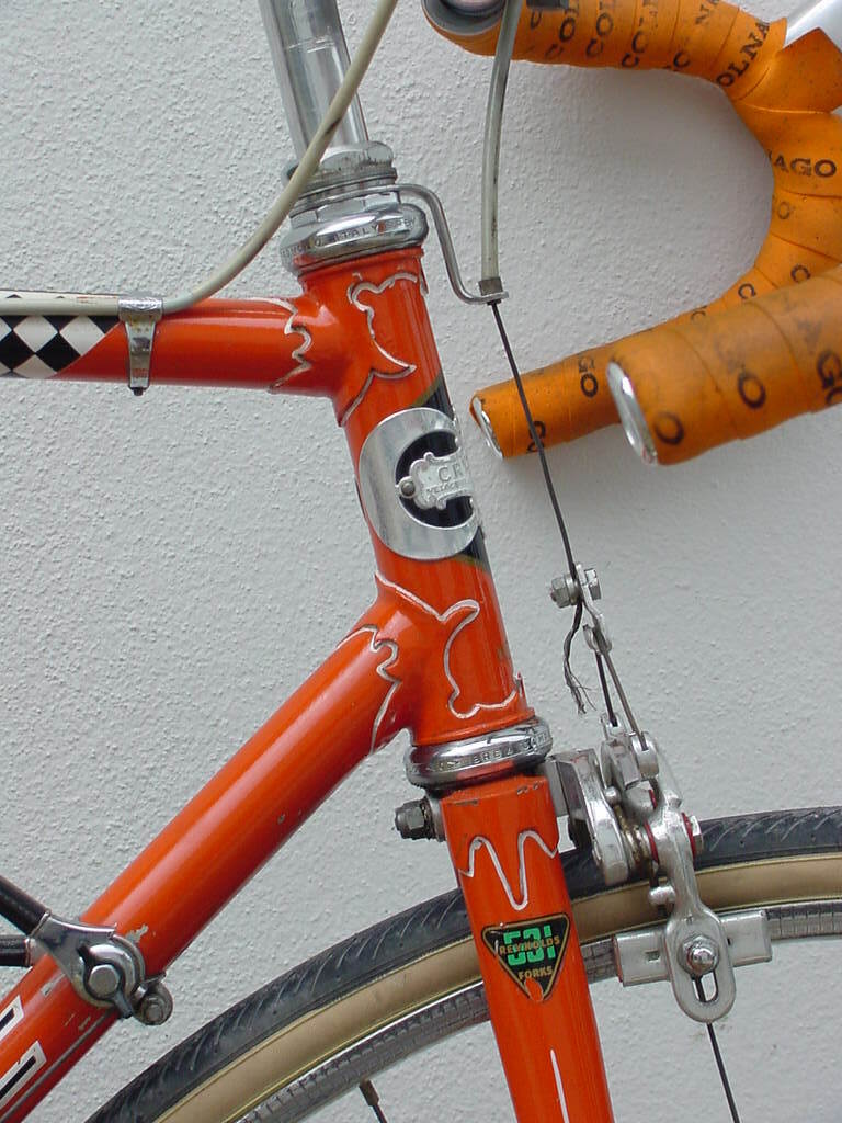 “The famous Pettersson brothers, with three consecutive TTT worlds titles 1967-1969 rode these bikes, two of them (Erik and Sture) on the orange Crescents while Gösta and Thomas rode the light blue Monark. Gösta won the 1971 Giro d’Italia on a Monark although that was a custom made bike, (said to be) De Rosa, painted blue. (Dirty joke of the late 70’s: “Do you know what the queen and Gösta Pettersson has in common? – The both have a Monark ‘tween their legs”)”