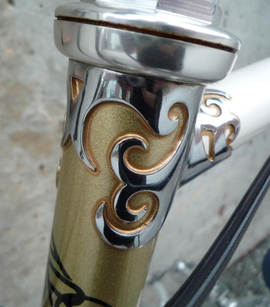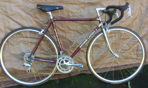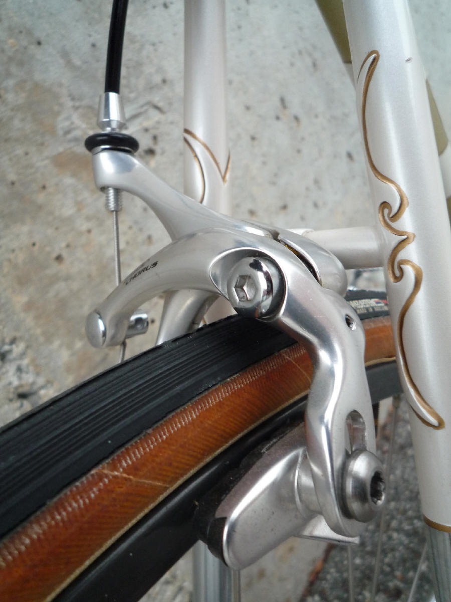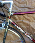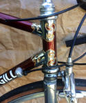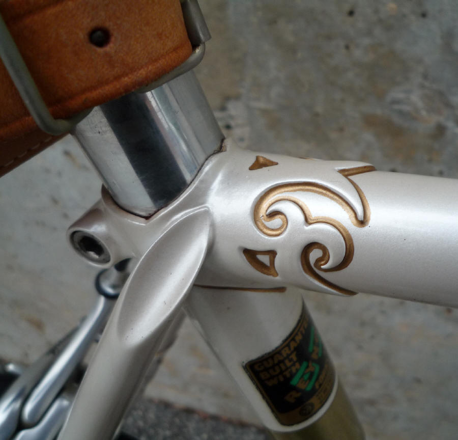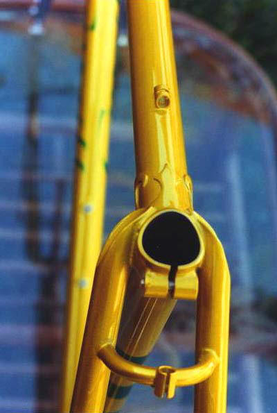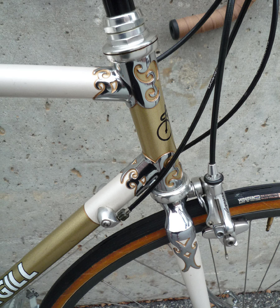 The Caygill company builds all sorts of frames, from “modern” TIG welded to traditional lugged. In the “Artisan” model, pictured here, hand cut blank lugs are used which the customer specifies from a large selection of patterns and the design may be altered by the customer by over drawing on the designs provided! Unheard of these days!