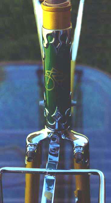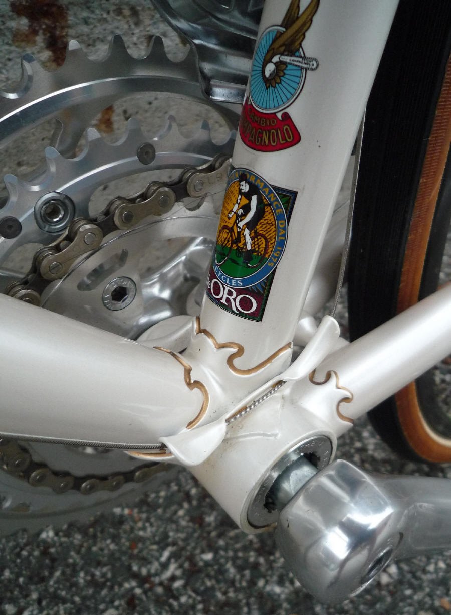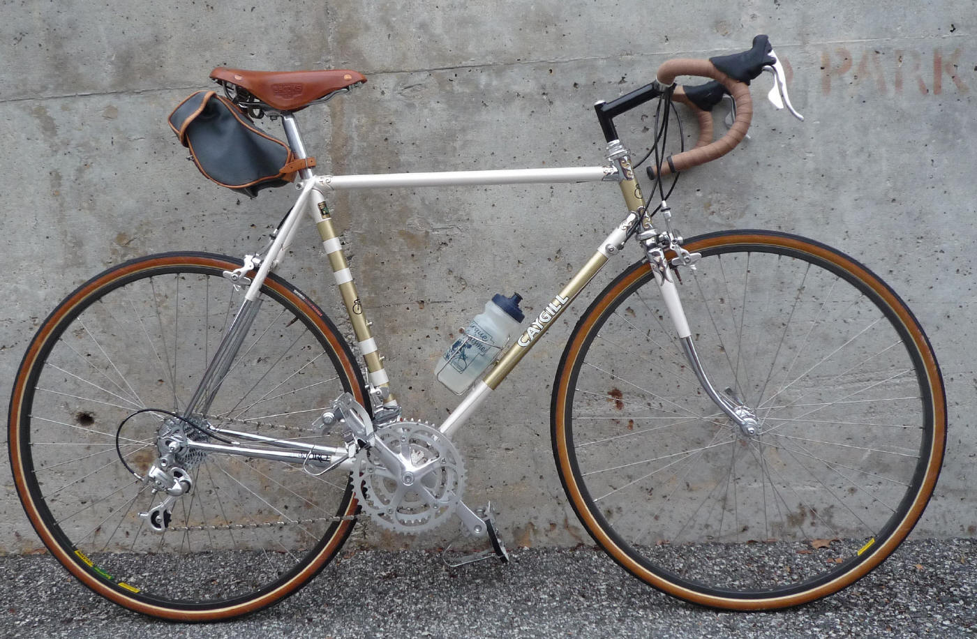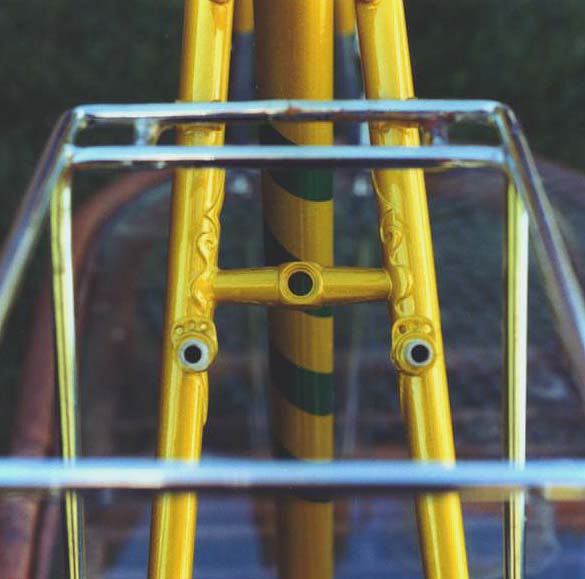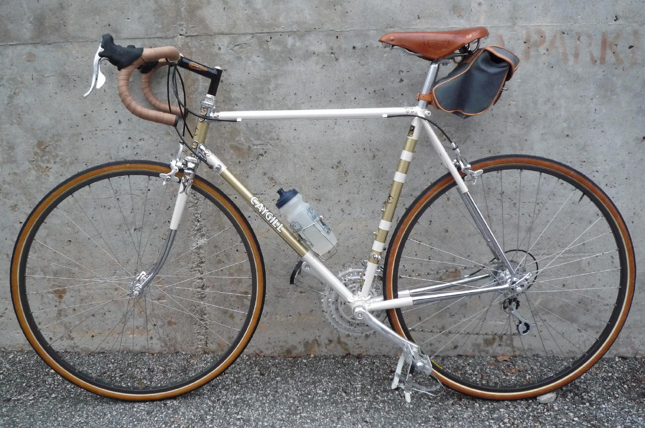 The Caygill company builds all sorts of frames, from “modern” TIG welded to traditional lugged. In the “Artisan” model, pictured here, hand cut blank lugs are used which the customer specifies from a large selection of patterns and the design may be altered by the customer by over drawing on the designs provided! Unheard of these days!