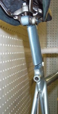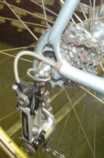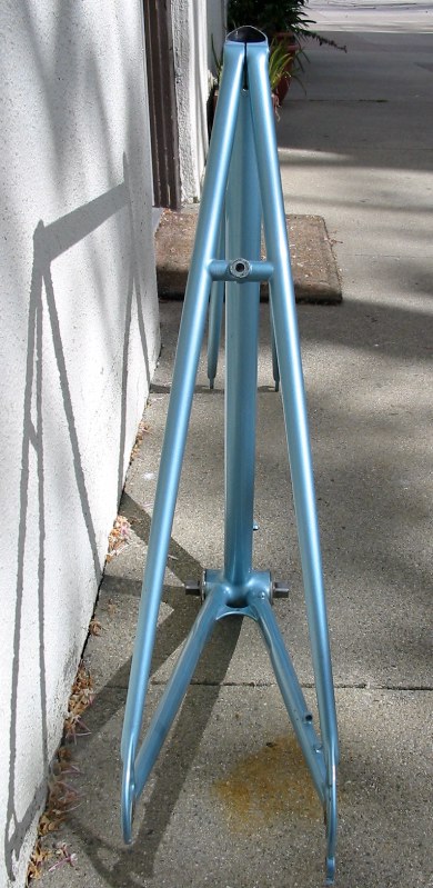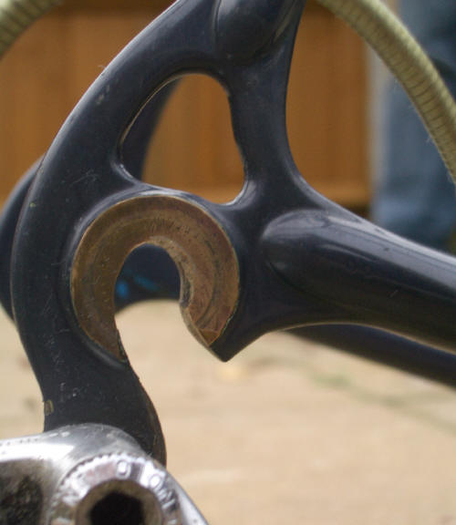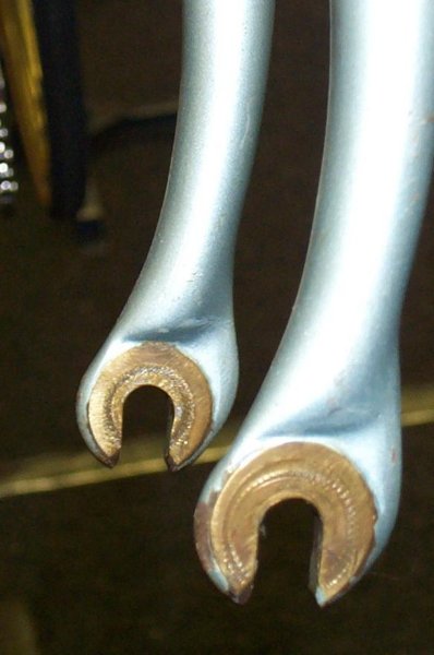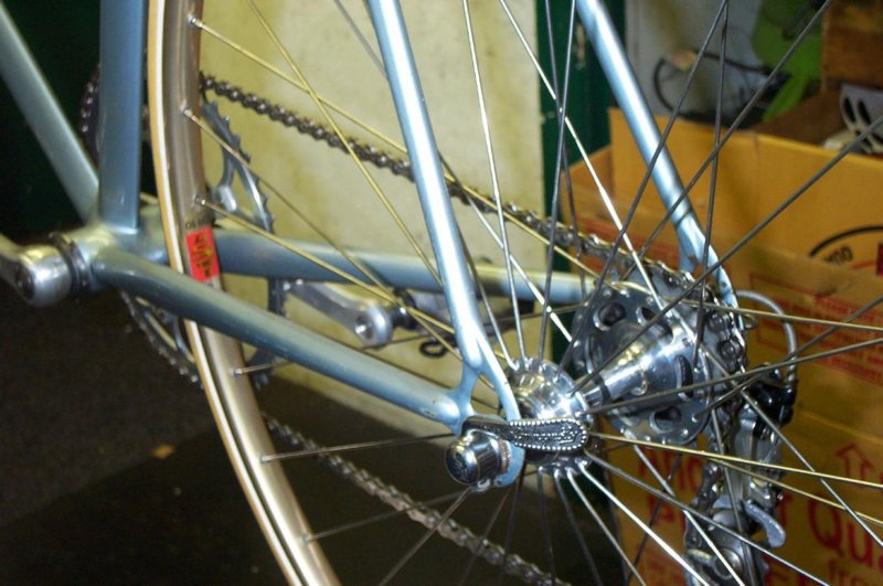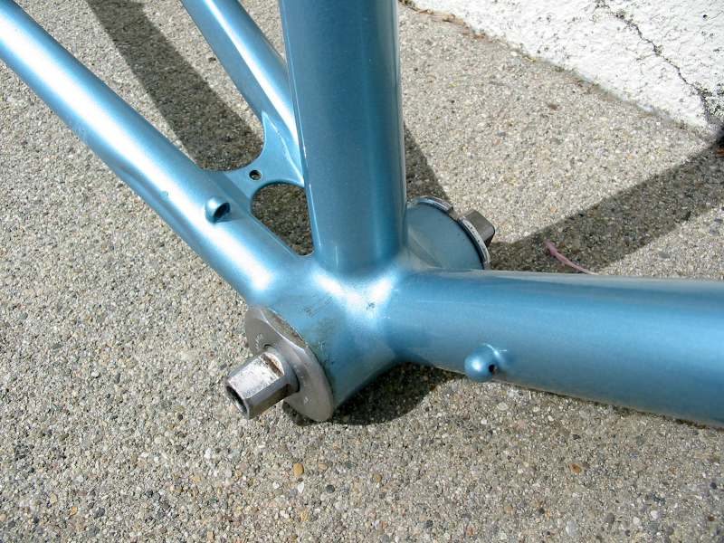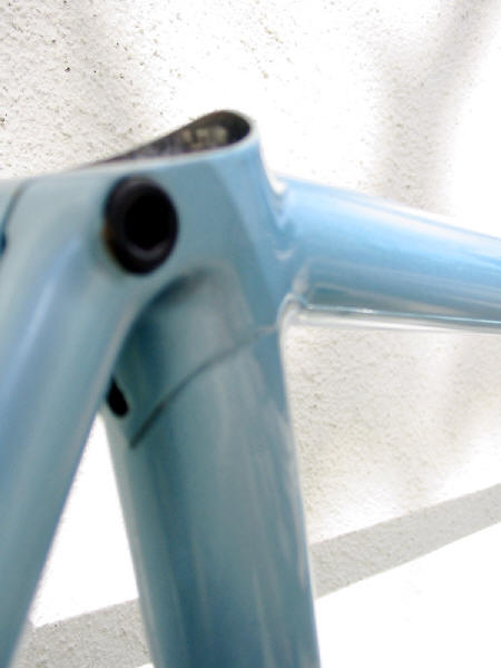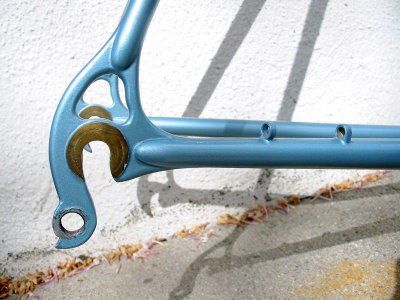 “The pictures do absolutely no justice to the quality of the build and workmanship on this frame. This is in my top 5 highest quality frames I’ve ever seen, and is the #1 “bronze welded” frame I’ve ever seen. Something to note is that he has the gussets built into the fork and seat cluster which is a technique I think Hilary mentioned recently. For me the most special part on the frame is the rear dropouts which are hand made from plate steel and then bronze washers are brazed onto them, very beautiful and very clean. “