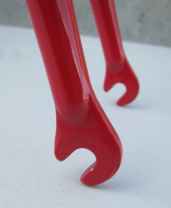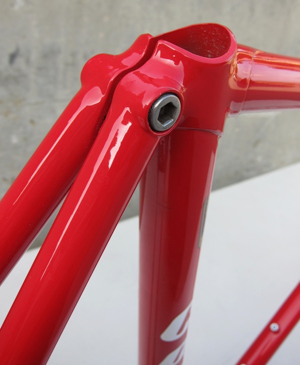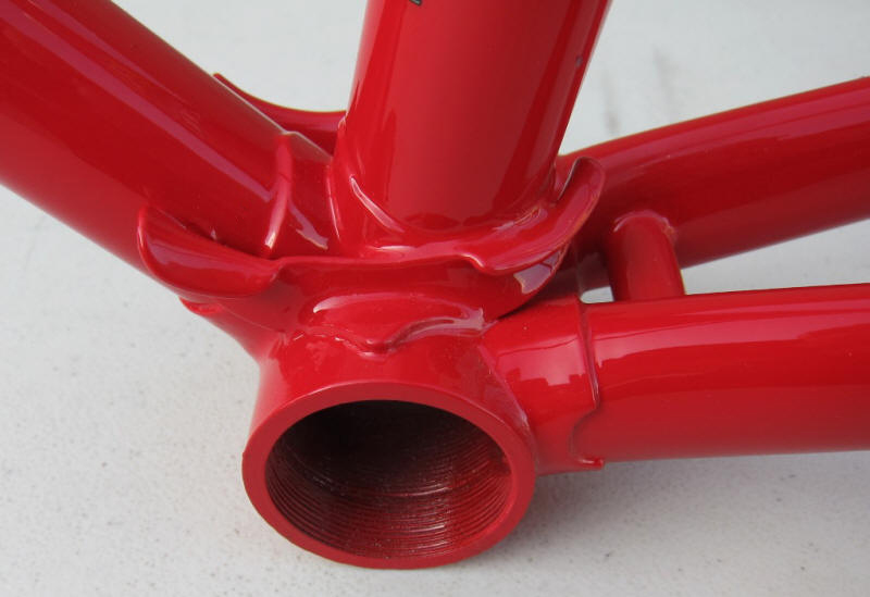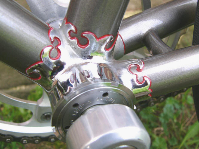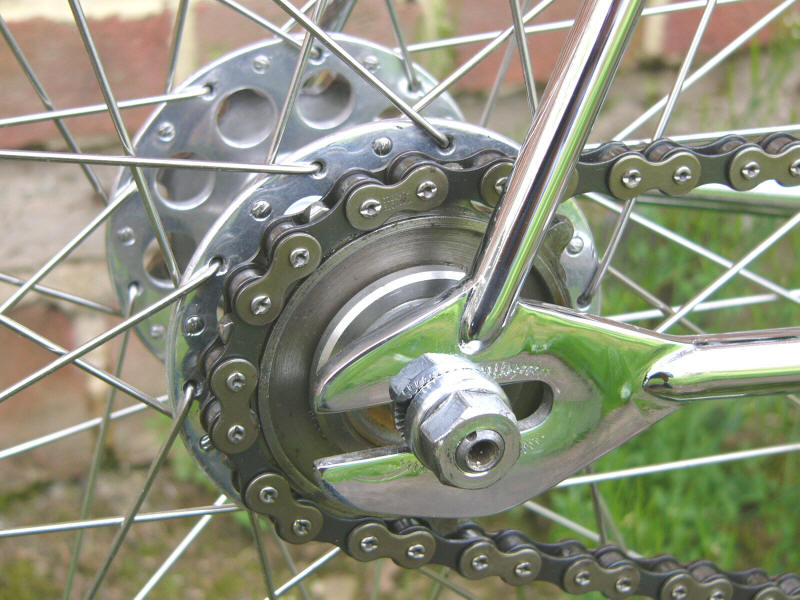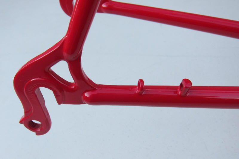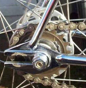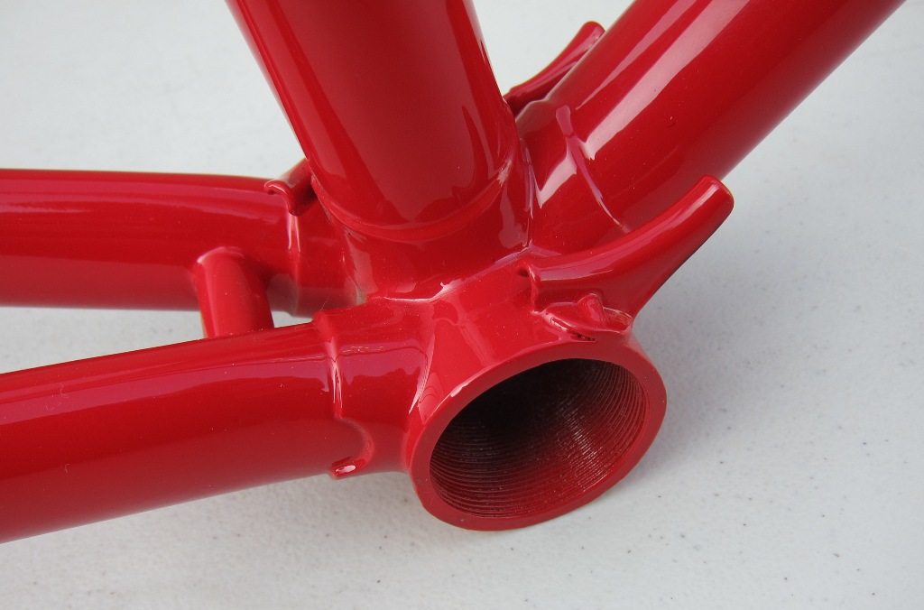“The 22 in. path model has 73′ parallel angles, a 22 1/2 in. top tube, .short rigid rear triangle with 17 in. x 1 in. round chain stays and 1/2 in. wrap-over seat stays; long path ends give maximum scope for chain adjustment. Front forks are round section with a 1 3/4 in. gradual rake. Bottom bracket height with 27in. wheels is 11 in. and, unless specified, there is no mudguard clearance, brake fitting facilities or any brazed-on items. Internal stiffening liners can be tilted to both….”