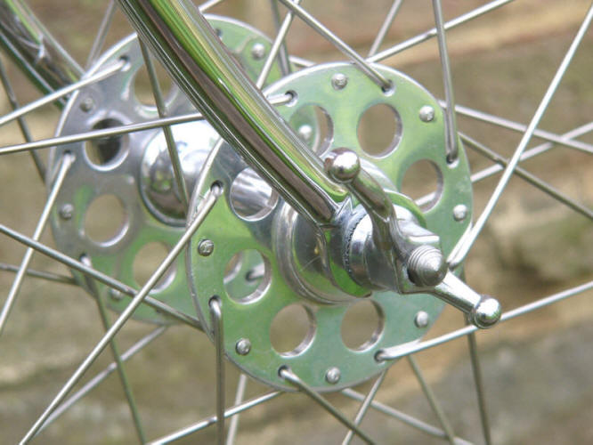 “Frames apart, Condor Cycles are proud indeed of two other features in cycle manufacture, wheel building and saddle design. Their catalogue contains an extract from the official magazine of The Council of Industrial Design following the testing of a 27 oz. sprint wheel, hand built by Montgomery Young of Condor Cycles. An axle load of more than 1,200 lb., more than 700 times the weight of the wheel – was sustained before slight inelastic distortion occurred.”