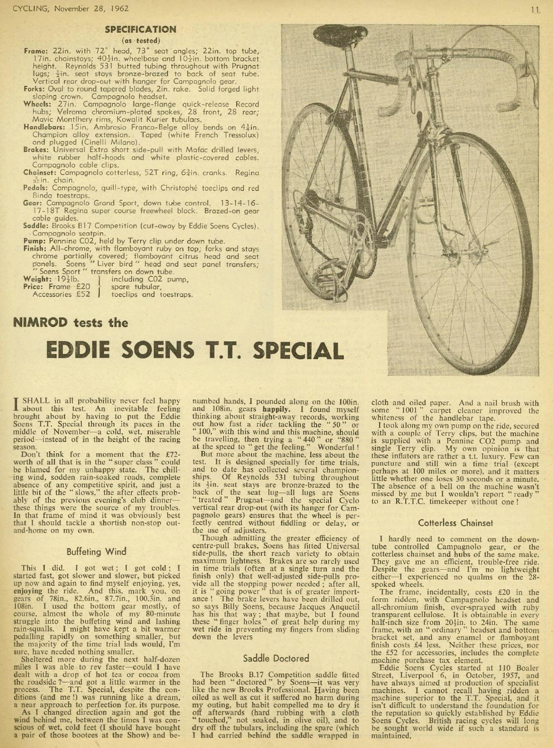 “During the early 1960s their frames were extremely popular especially the track models. The models produced at the time were the Campionissimo road frame, ‘55’ Time Trial Special, Vigorelli Sprinters Frame and the Roma Pursuit light track frame. Ron Spencer of the Warrington CC who was a very good time trialist in the 60’s rode an Eddie Soens bike. There is Eddie Soens memorable race run every year to honour his memory.”