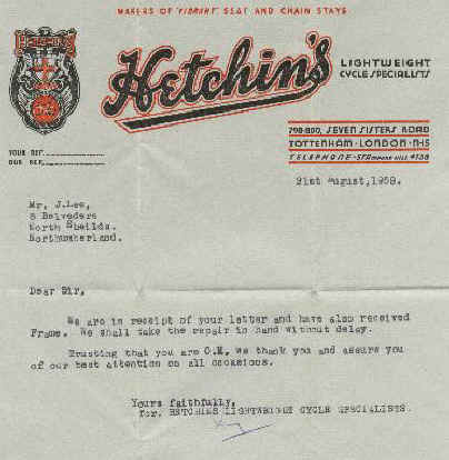 Joe Lee's Experto Crede bikes, track & 1956 bike & 1959 letter to Mr. Lee