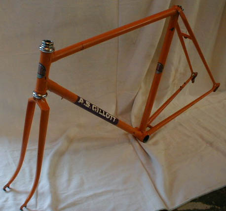 Gillott frames universally feature a very high quality of build with a refined sense of aesthetics. Quality, not quantity (there was never piecework) nor extravagance. The classic ‘Spear’ lug cut is the most popular, combining elegance and restraint. The ‘Fleur de Lis’ was in demand and endured into the 1960’s. The rarest lug cut is the ‘Curly cut’, only 2 frames known to exist. The lugless ‘L’Atlantique’ is justly famous and Gillott’s are well known for their use of taper tubes and beautifully curved forks . As most employees were racing men this informed the frames’ design, angles, fork rake etc. Gillott’s specialized in race, time trial, track and sporty clubmen’s’ lightweights.