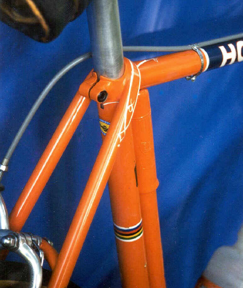” …..we bought (the Holdsworth) in 1984 when my wife was still my girlfriend :). Many of the Zeus 2001 parts that were originally on the Cuevas (crank, bb, brakes, hubs) found their way on to the Holdsworth. Recently, I suggested we restore it with all Campy parts. Man, I won’t do that again. She has a serious sentimental attachment to the bike AS IS. But maybe I can talk her into replacing those Shimano shifters.” Greg Pitman