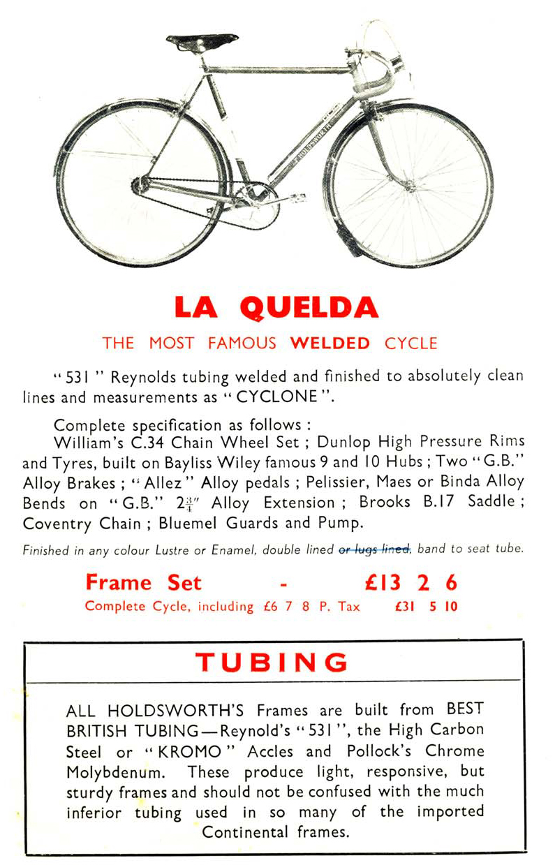 Holdsworth was a name to be known, founded in 1933 by W.F. “Sandy” Holdsworth in Kent, it rapidly expanded into a multi-shop enterprise. By 1960’s & 70’s, the main stores and factory were in London. Holdsworth bought the Claud Butler brand name in 1958. They bought the Freddie Grubb name around 1952 after Grubb had died. Finally, the Macleans name was bought around 1963.