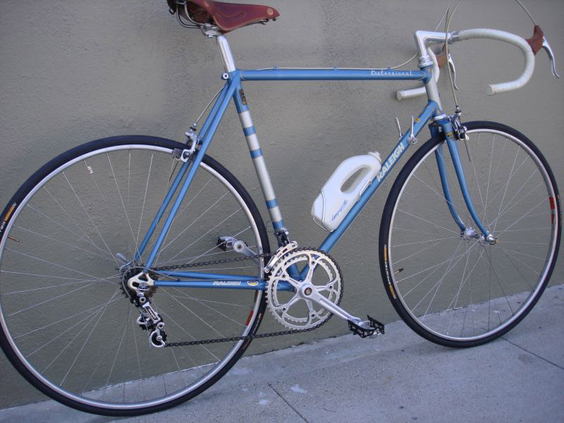 “In 1960 Raleigh brought out the five or ten-speed Blue Streak to push sales in the teenage sports enthusiast sector. Complete with twin bar mounted bottles it certainly was popular!”