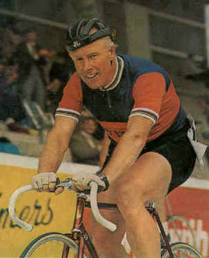 He was a World Champion track specialist. His compelling autobiography (sadly out of print) tells the tale of a self directed and strong willed man who became the best track sprinter in the world. After retiring from the racing world, he began bicycle company which was not a success. Reg then went into industrial sales and made a second fortune. Much later, at the age of 51, he staged a remarkable comeback and proved his mettle once again in the racing game! Truly Reg Harris is a worthy role model to all riders!